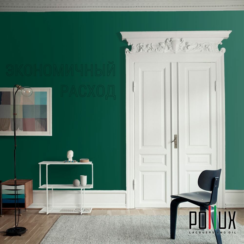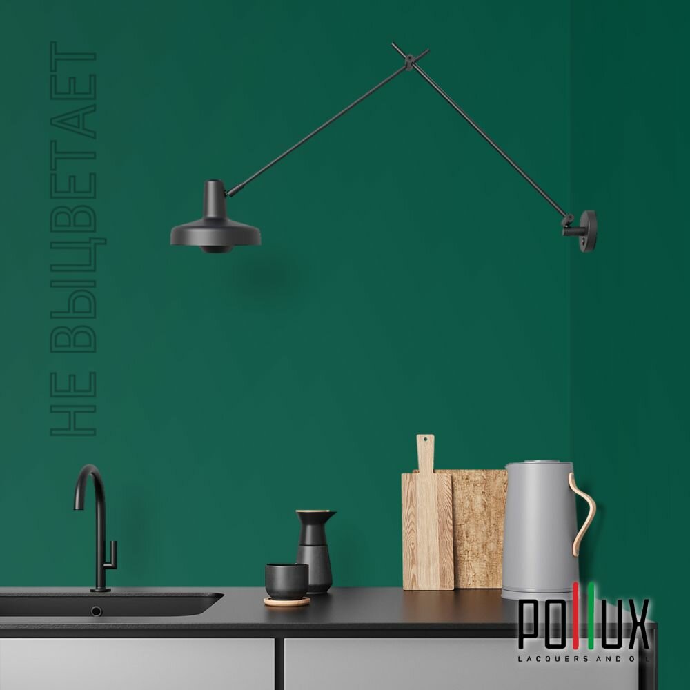 Краска моющаяся интерьерная для стен и потолков, Pollux INTERIOR без запаха, быстросохнущая, акриловая, матовое покрытие, цвет NCS S 6030-B90G, 1л.