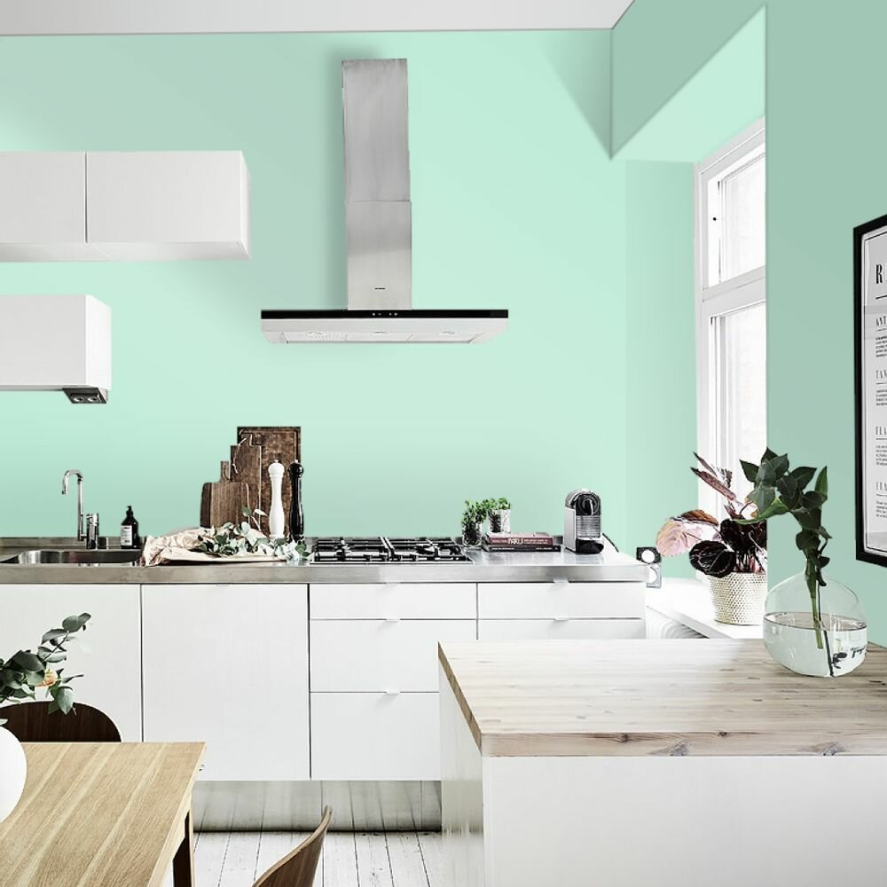 Краска моющаяся интерьерная для стен и потолков, Pollux INTERIOR без запаха, быстросохнущая, акриловая, матовое покрытие, цвет NCS S 6030-B90G, 1л.