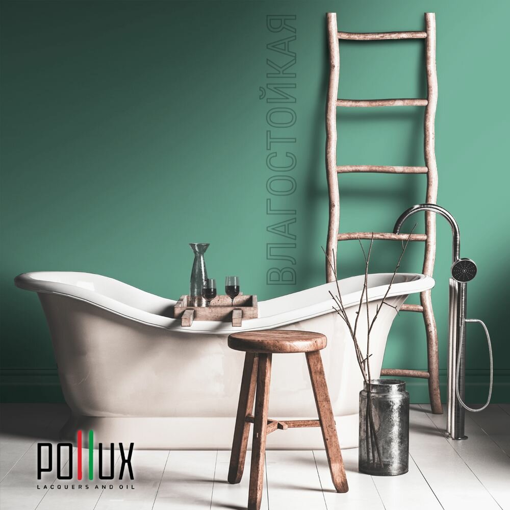 Краска моющаяся интерьерная для стен и потолков, Pollux INTERIOR без запаха, быстросохнущая, акриловая, матовое покрытие, цвет NCS S 4050-B90G, 1л.