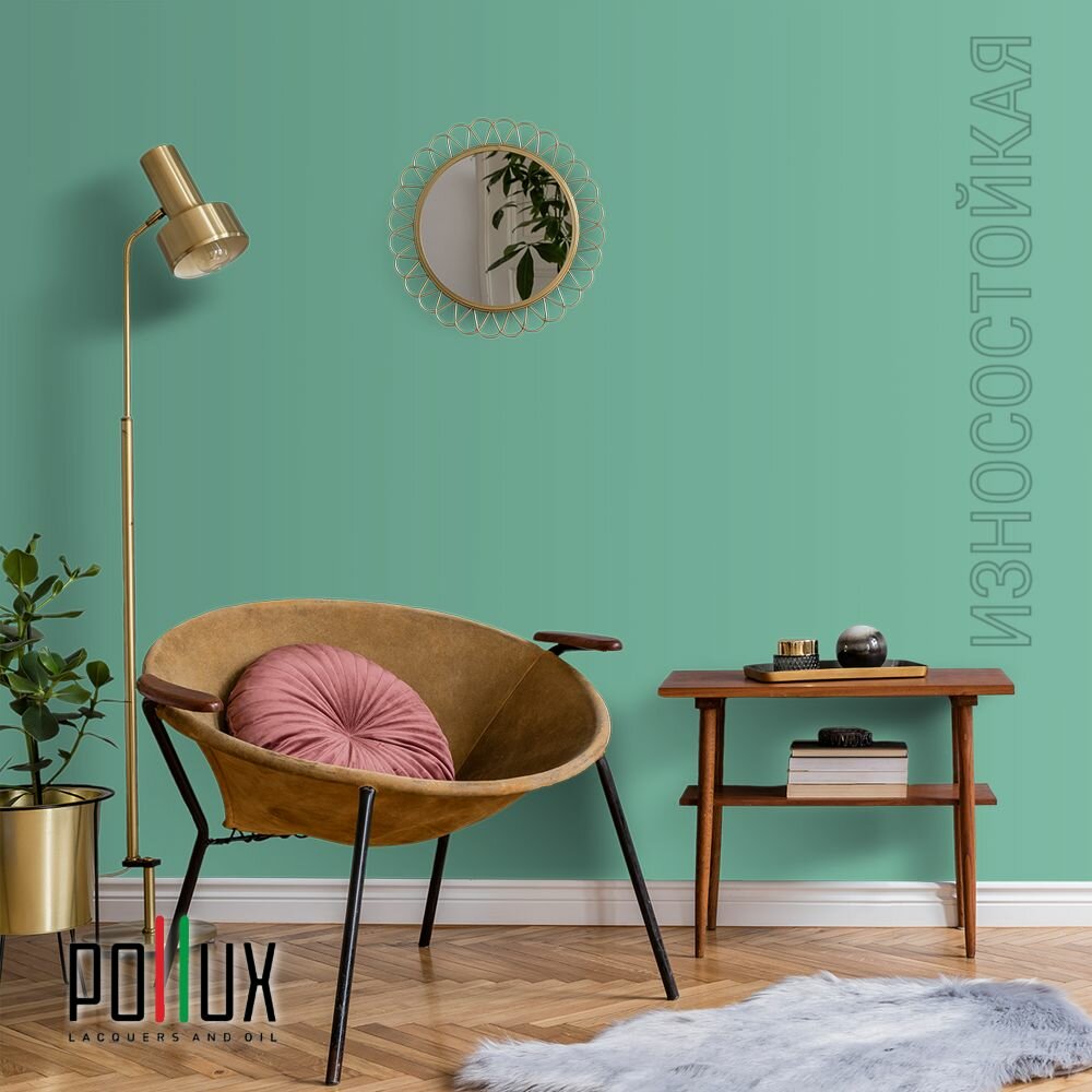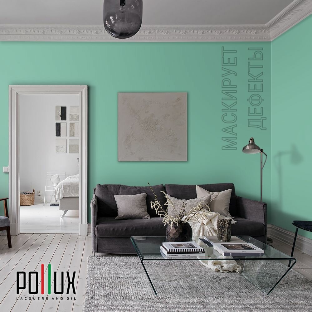 Краска моющаяся интерьерная для стен и потолков, Pollux INTERIOR без запаха, быстросохнущая, акриловая, матовое покрытие, цвет NCS S 6030-B90G, 1л.