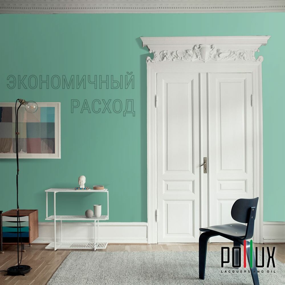 Краска моющаяся интерьерная для стен и потолков, Pollux INTERIOR без запаха, быстросохнущая, акриловая, матовое покрытие, цвет NCS S 1030-B90G, 1л.