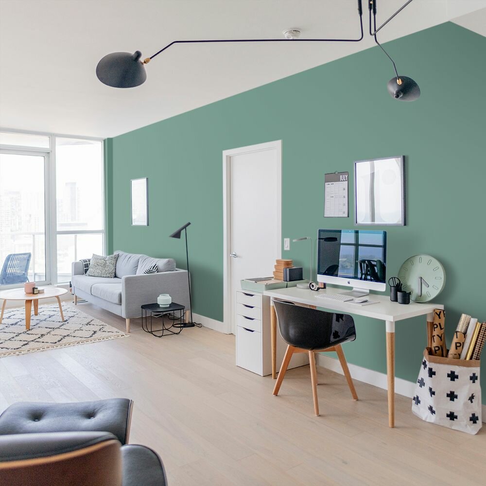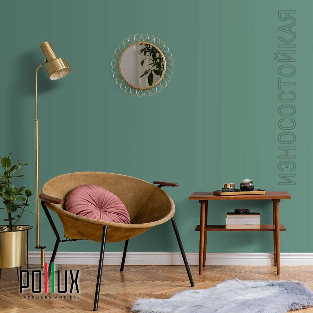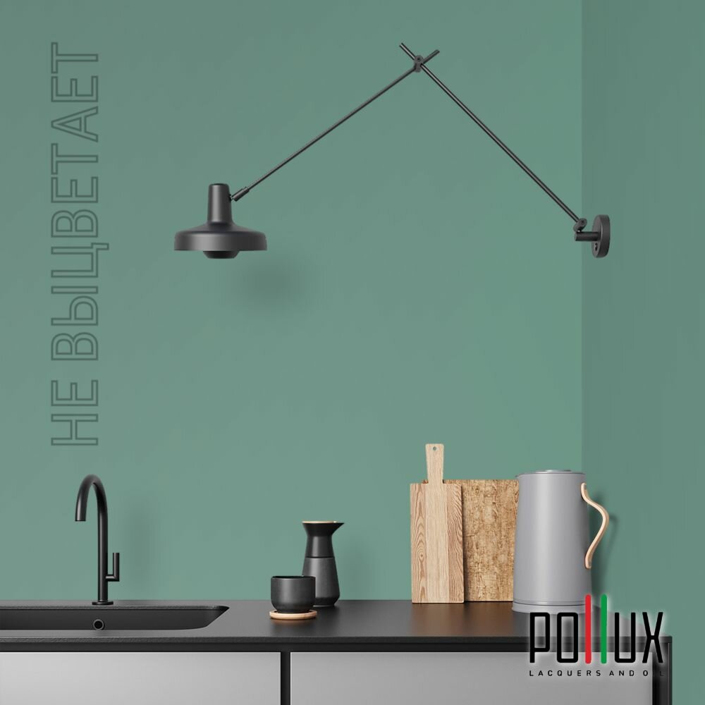 Краска моющаяся интерьерная для стен и потолков, Pollux INTERIOR без запаха, быстросохнущая, акриловая, матовое покрытие, цвет NCS S 6030-B90G, 1л.