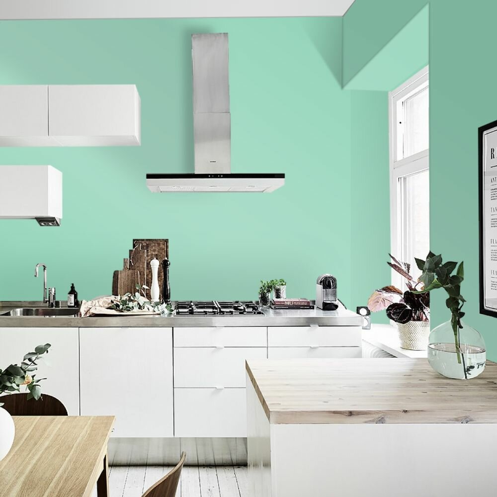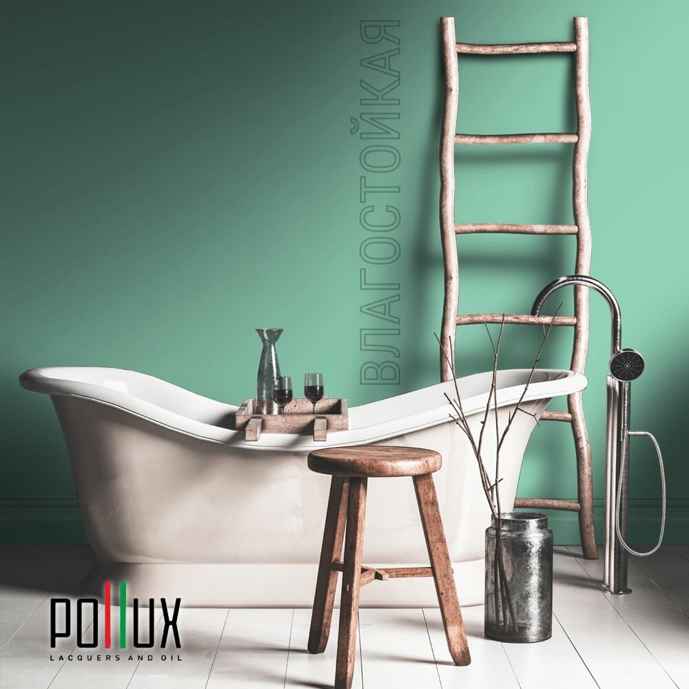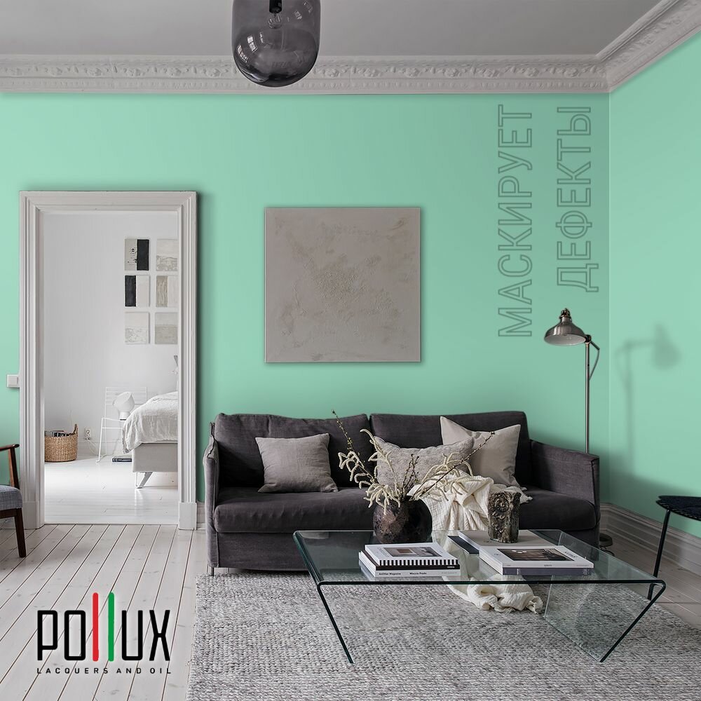 Краска моющаяся интерьерная для стен и потолков, Pollux INTERIOR без запаха, быстросохнущая, акриловая, матовое покрытие, цвет NCS S 6030-B90G, 1л.