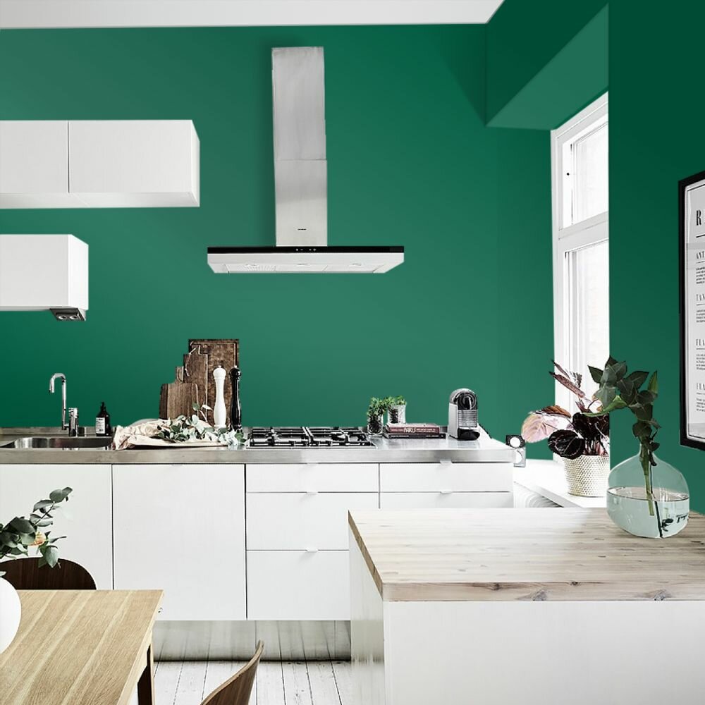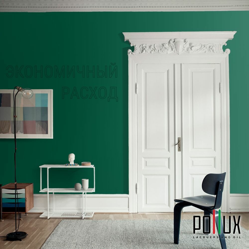 Краска моющаяся интерьерная для стен и потолков, Pollux INTERIOR без запаха, быстросохнущая, акриловая, матовое покрытие, цвет NCS S 6030-B90G, 5л.