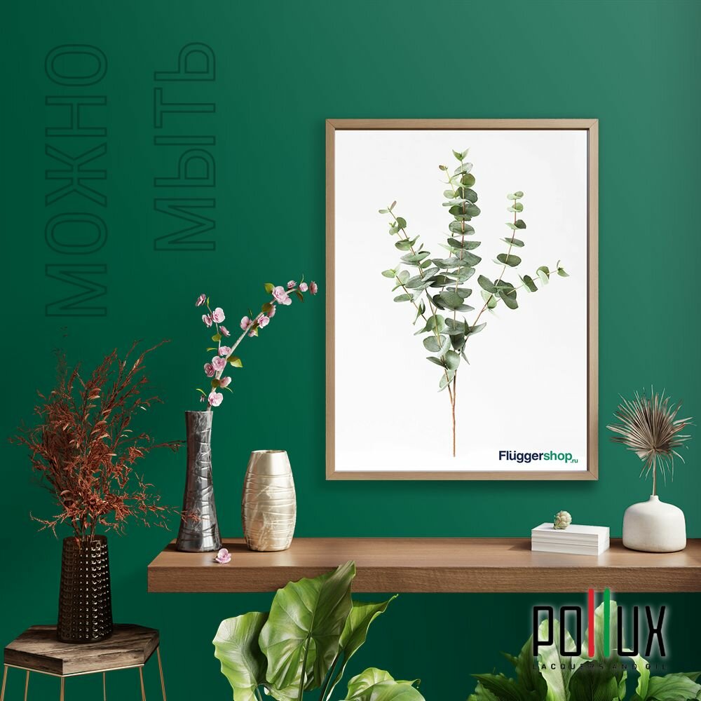 Краска моющаяся интерьерная для стен и потолков, Pollux INTERIOR без запаха, быстросохнущая, акриловая, матовое покрытие, цвет NCS S 6010-B90G, 1л.