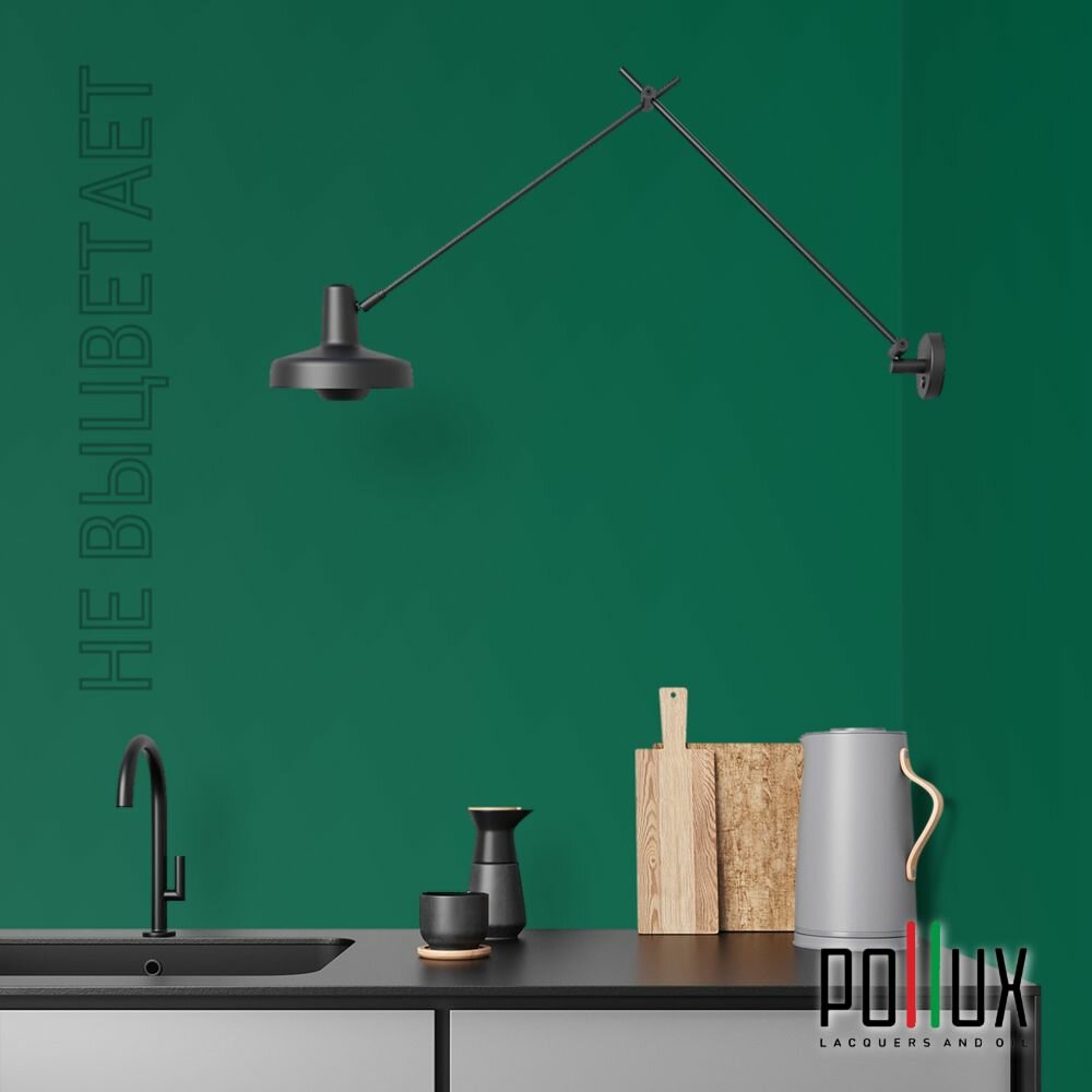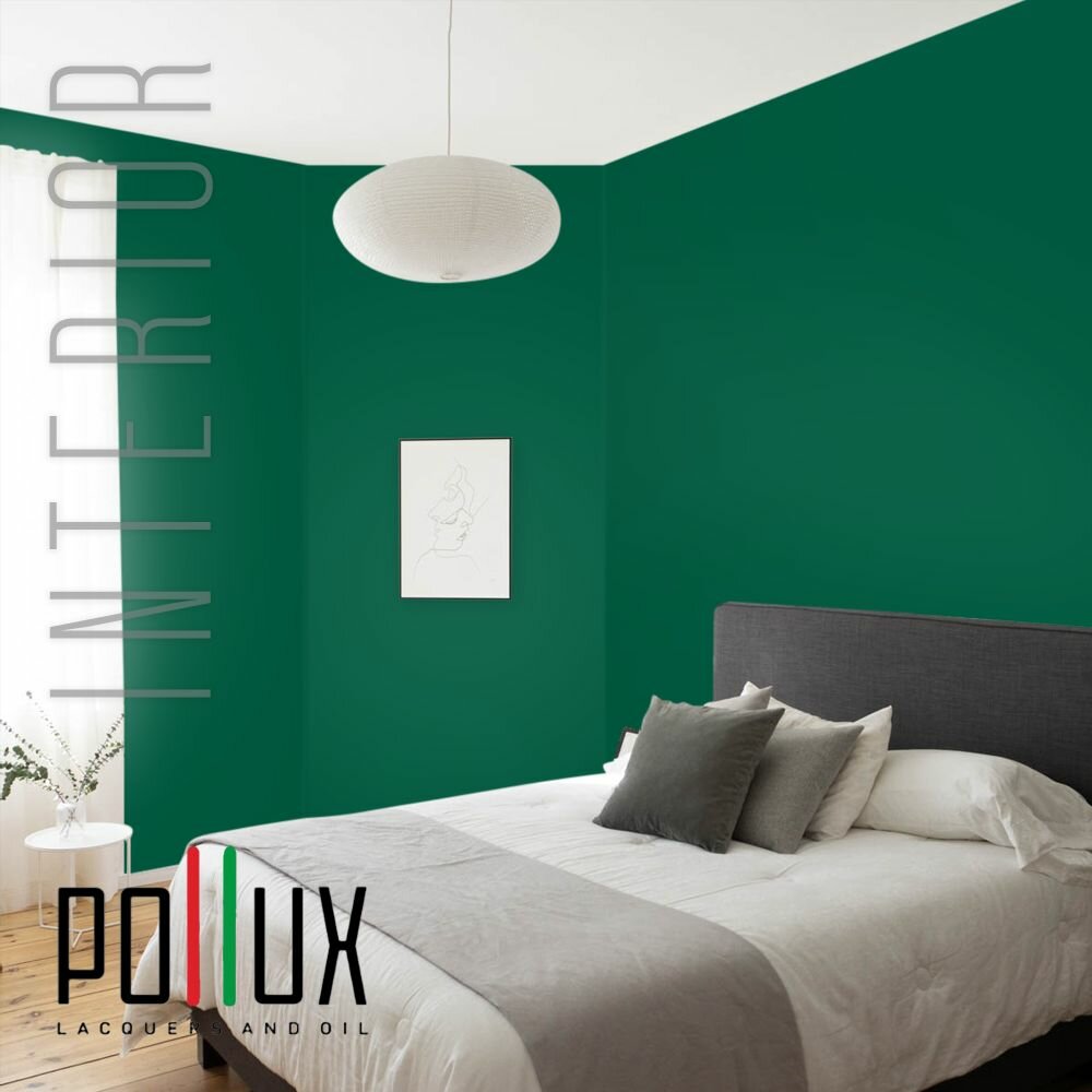 Краска моющаяся интерьерная для стен и потолков, Pollux INTERIOR без запаха, быстросохнущая, акриловая, матовое покрытие, цвет NCS S 6030-B90G, 1л.