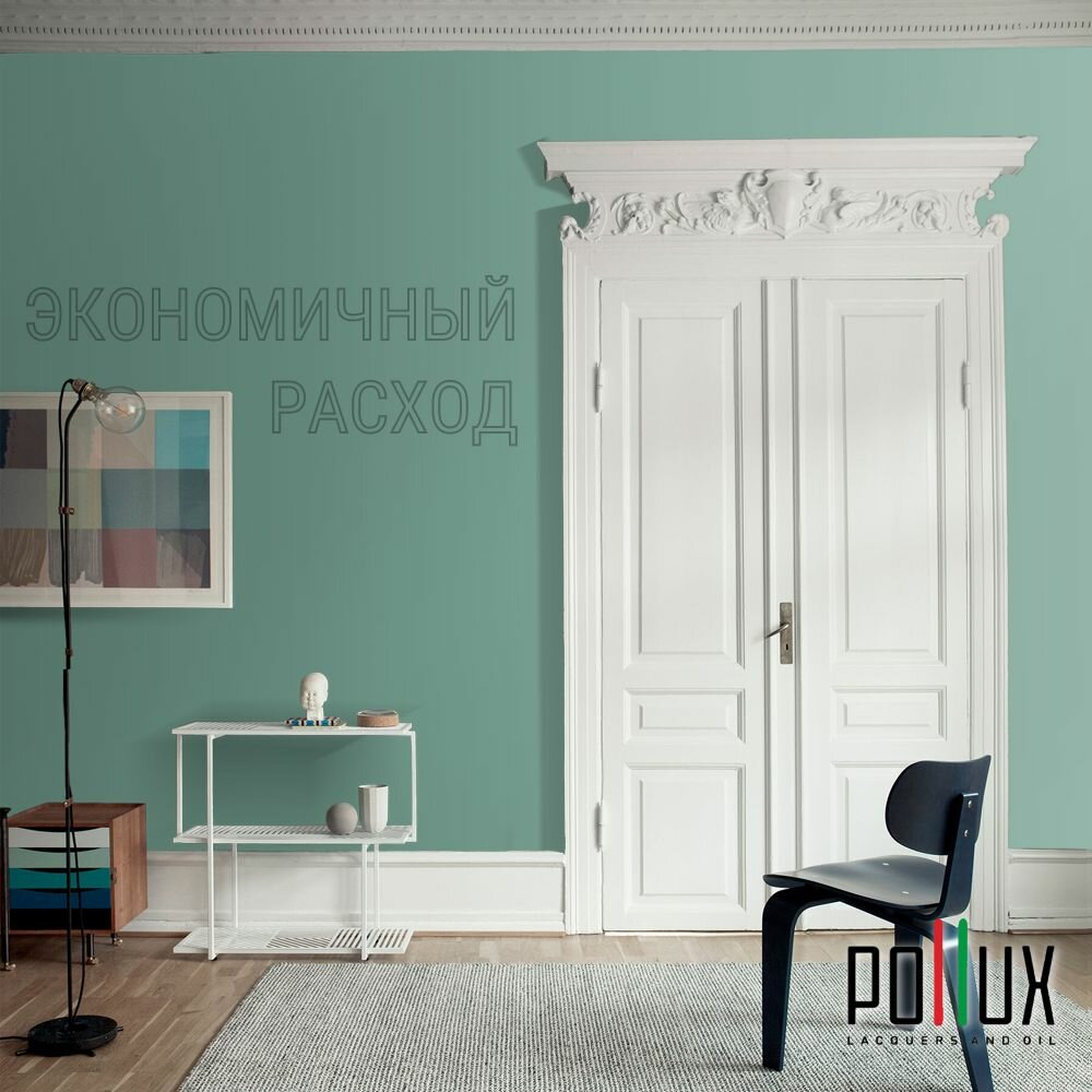 Краска моющаяся интерьерная для стен и потолков, Pollux INTERIOR без запаха, быстросохнущая, акриловая, матовое покрытие, цвет NCS S 6030-B90G, 1л.