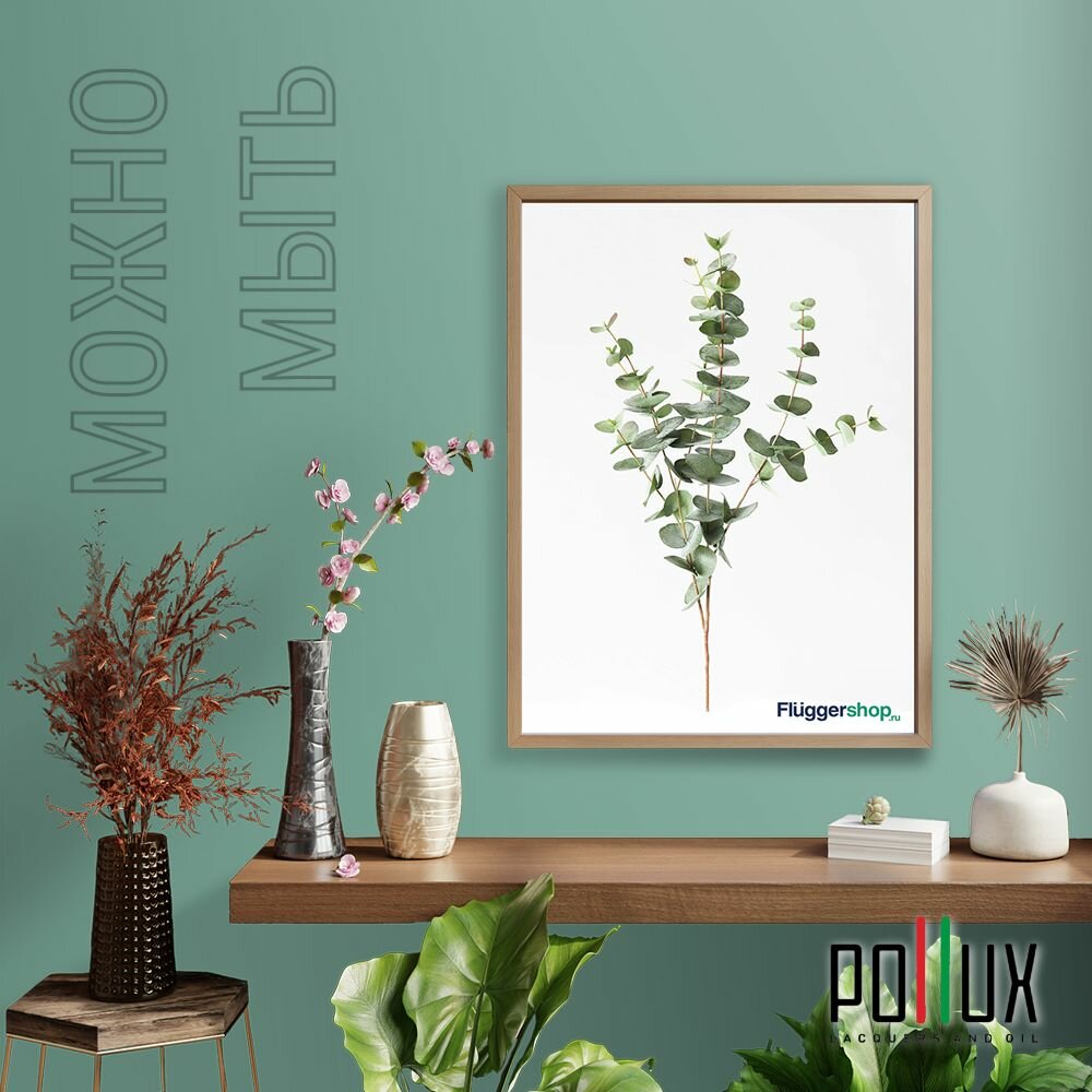Краска моющаяся интерьерная для стен и потолков, Pollux INTERIOR без запаха, быстросохнущая, акриловая, матовое покрытие, цвет NCS S 6010-B90G, 1л.