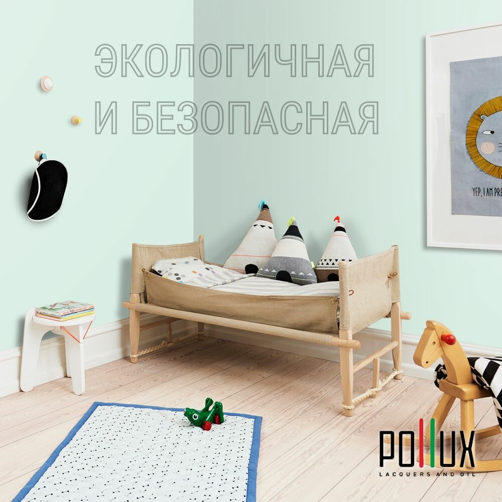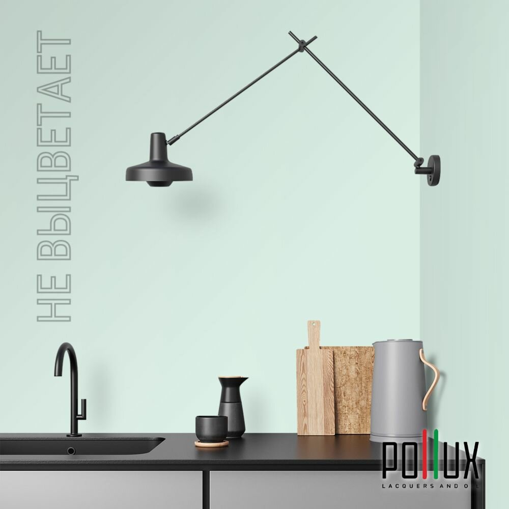Краска моющаяся интерьерная для стен и потолков, Pollux INTERIOR без запаха, быстросохнущая, акриловая, матовое покрытие, цвет NCS S 0510-B90G, 1л.