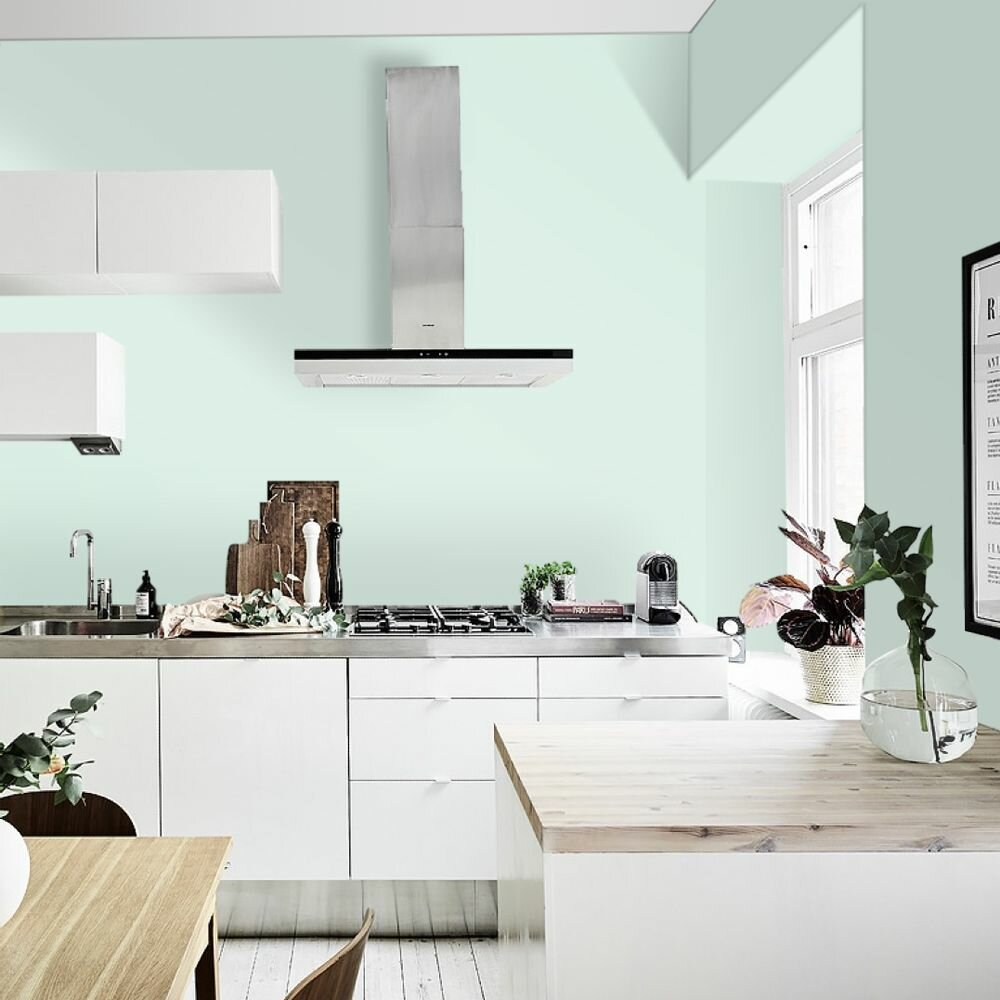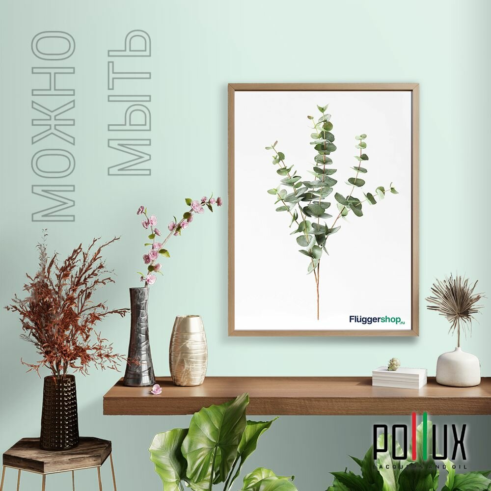Краска моющаяся интерьерная для стен и потолков, Pollux INTERIOR без запаха, быстросохнущая, акриловая, матовое покрытие, цвет NCS S 6030-B90G, 1л.
