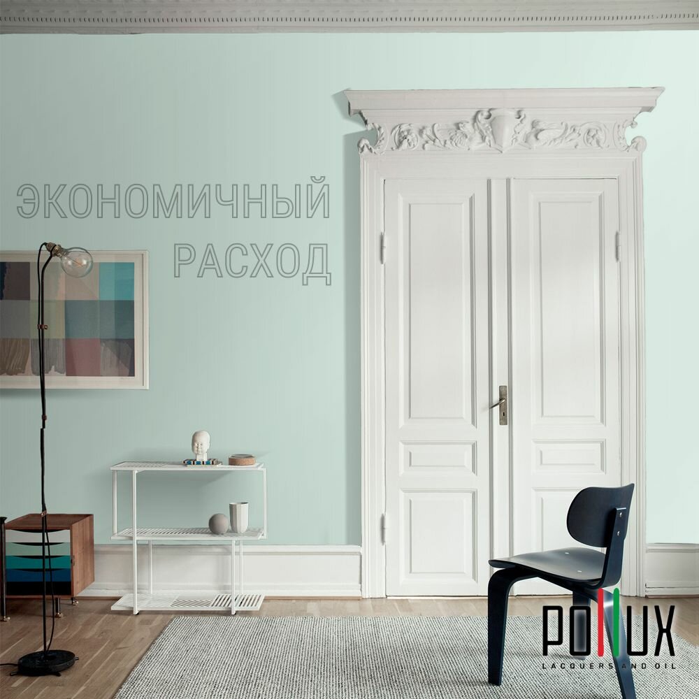 Краска моющаяся интерьерная для стен и потолков, Pollux INTERIOR без запаха, быстросохнущая, акриловая, матовое покрытие, цвет NCS S 4030-B90G, 1л.