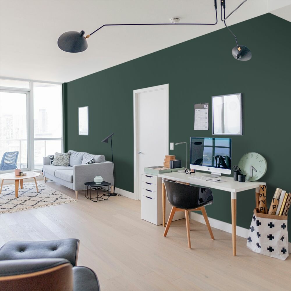 Краска моющаяся интерьерная для стен и потолков, Pollux INTERIOR без запаха, быстросохнущая, акриловая, матовое покрытие, цвет NCS S 4050-B90G, 1л.