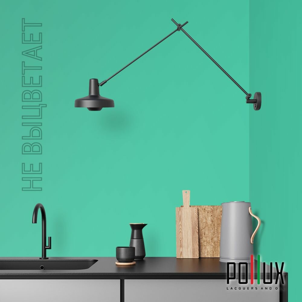 Краска моющаяся интерьерная для стен и потолков, Pollux INTERIOR без запаха, быстросохнущая, акриловая, матовое покрытие, цвет NCS S 6030-B90G, 1л.