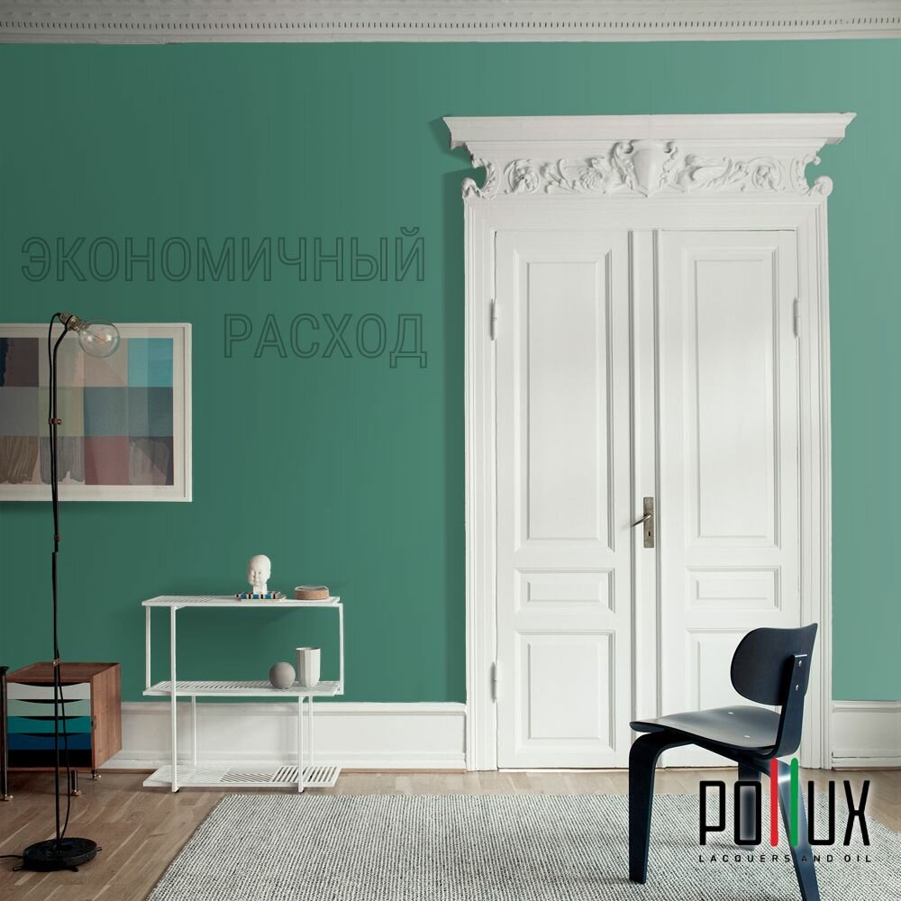 Краска моющаяся интерьерная для стен и потолков, Pollux INTERIOR без запаха, быстросохнущая, акриловая, матовое покрытие, цвет NCS S 6030-B90G, 1л.