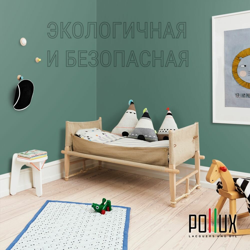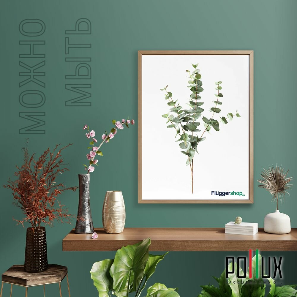 Краска моющаяся интерьерная для стен и потолков, Pollux INTERIOR без запаха, быстросохнущая, акриловая, матовое покрытие, цвет NCS S 6010-B90G, 1л.