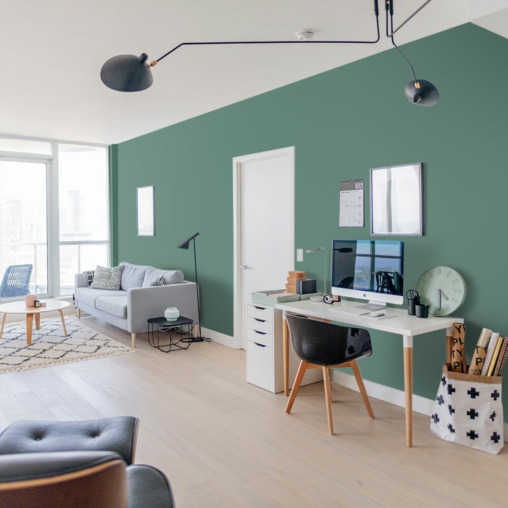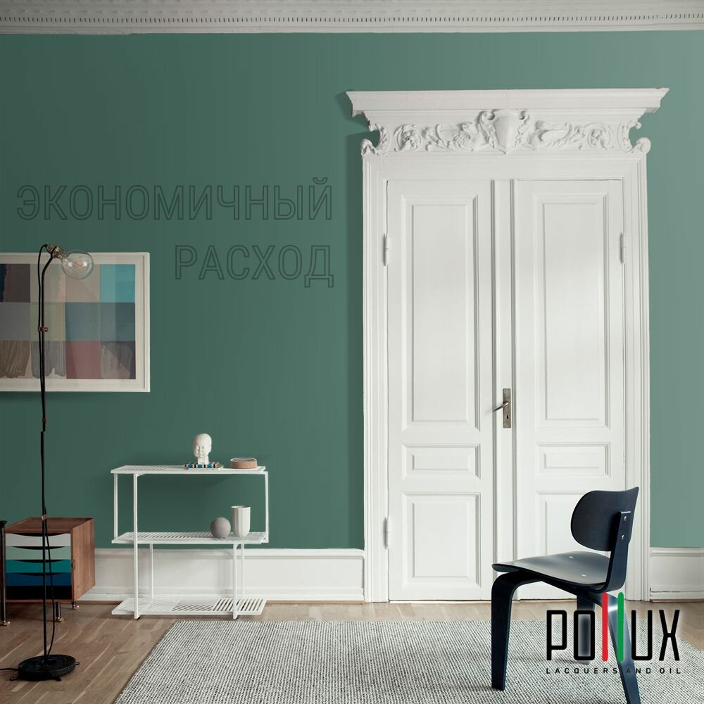 Краска моющаяся интерьерная для стен и потолков, Pollux INTERIOR без запаха, быстросохнущая, акриловая, матовое покрытие, цвет NCS S 6030-B90G, 1л.