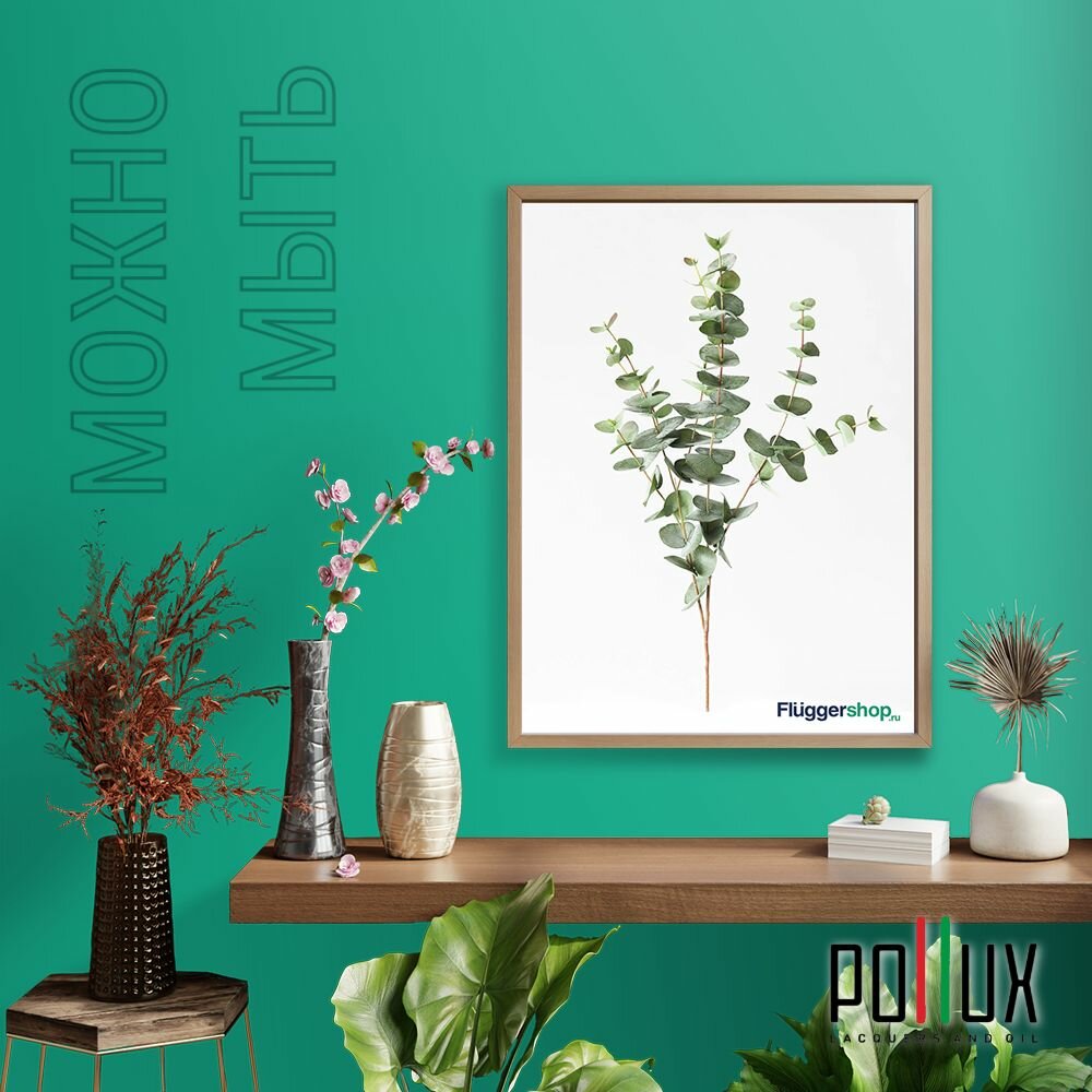 Краска моющаяся интерьерная для стен и потолков, Pollux INTERIOR без запаха, быстросохнущая, акриловая, матовое покрытие, цвет NCS S 6030-B90G, 1л.