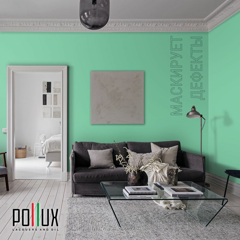 Краска моющаяся интерьерная для стен и потолков, Pollux INTERIOR без запаха, быстросохнущая, акриловая, матовое покрытие, цвет NCS S 1060-G, 1л.