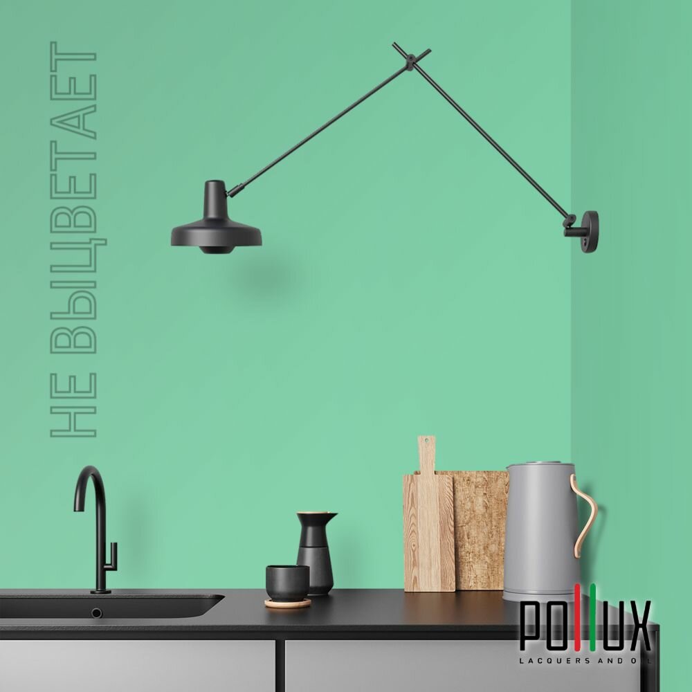 Краска моющаяся интерьерная для стен и потолков, Pollux INTERIOR без запаха, быстросохнущая, акриловая, матовое покрытие, цвет NCS S 6030-G, 1л.