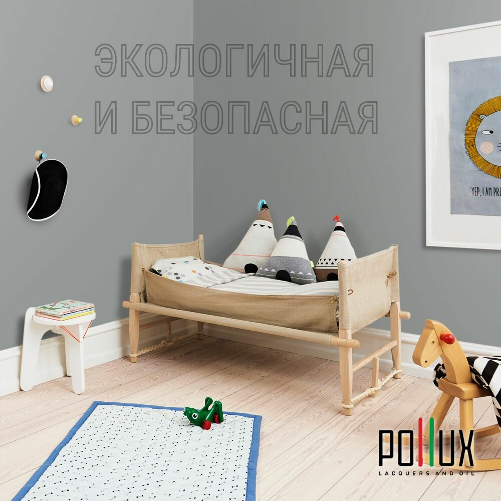 Краска моющаяся интерьерная для стен и потолков, Pollux INTERIOR без запаха, быстросохнущая, акриловая, матовое покрытие, цвет NCS S 2002-G, 1л.