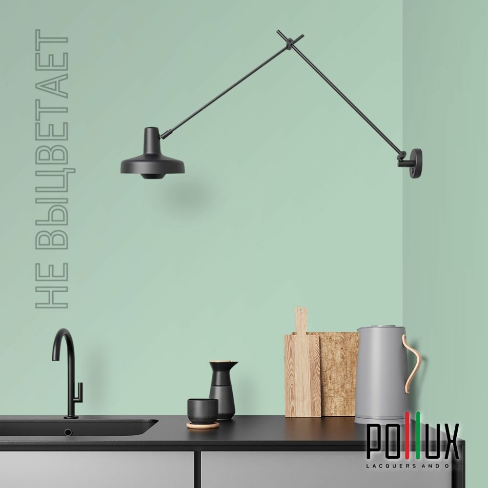 Краска моющаяся интерьерная для стен и потолков, Pollux INTERIOR без запаха, быстросохнущая, акриловая, матовое покрытие, цвет NCS S 6030-G, 1л.