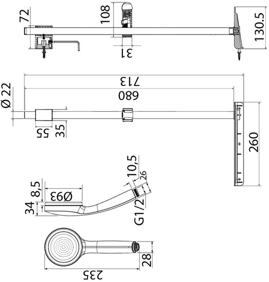 | Высота стойки для душа | 713 мм |
