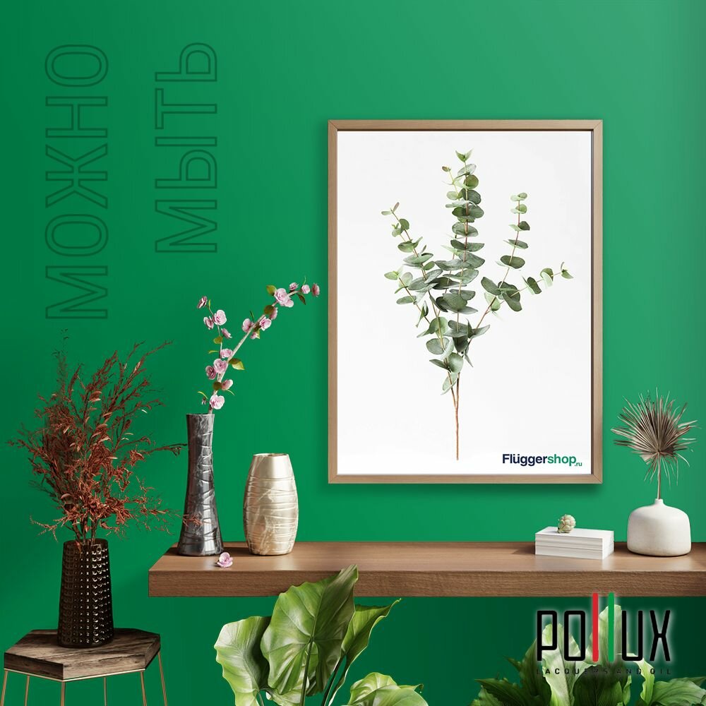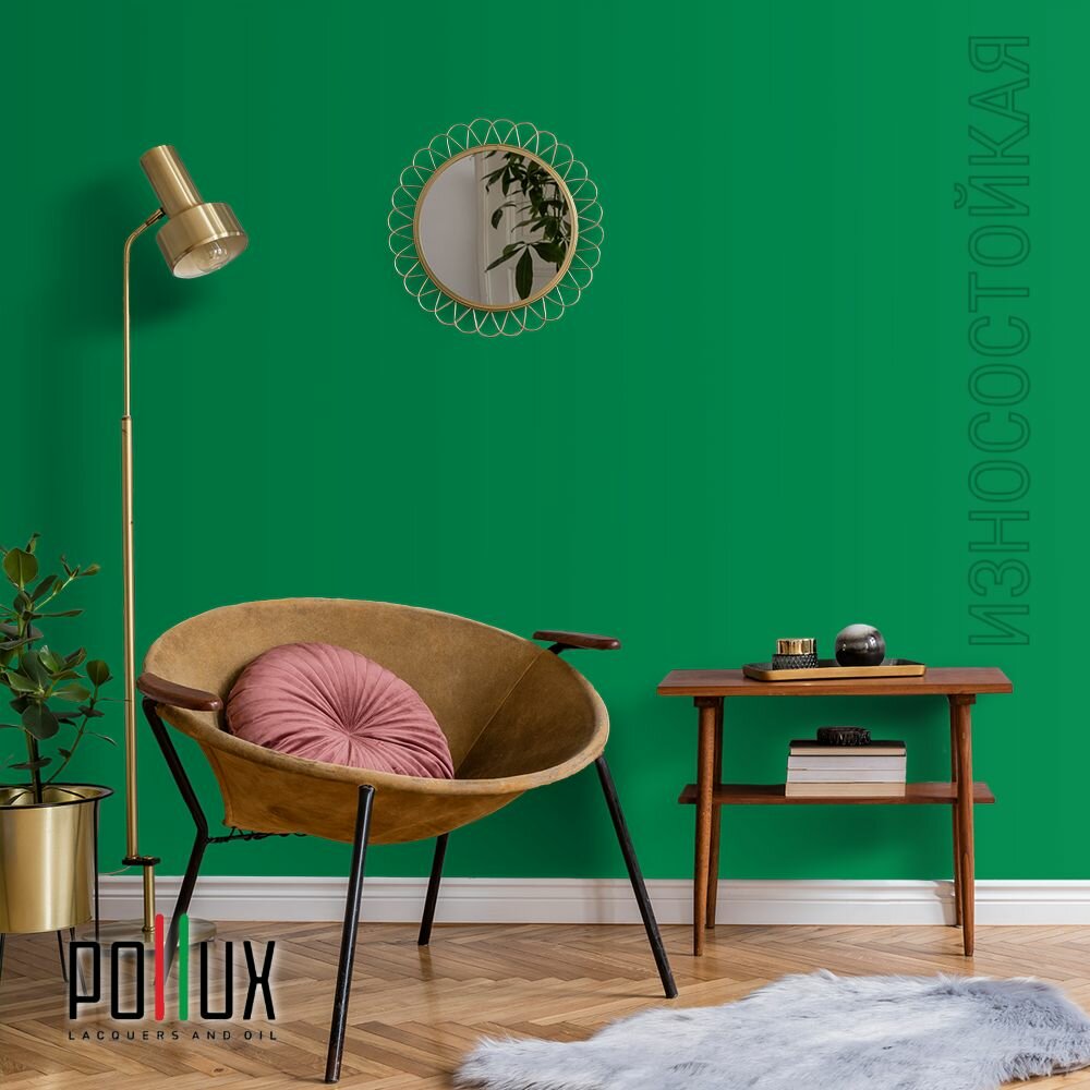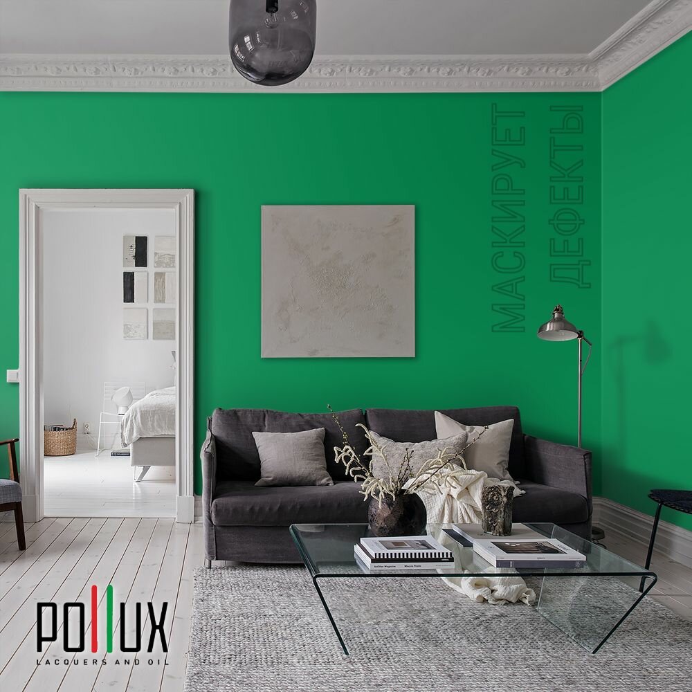 Краска моющаяся интерьерная для стен и потолков, Pollux INTERIOR без запаха, быстросохнущая, акриловая, матовое покрытие, цвет NCS S 6020-G, 1л.