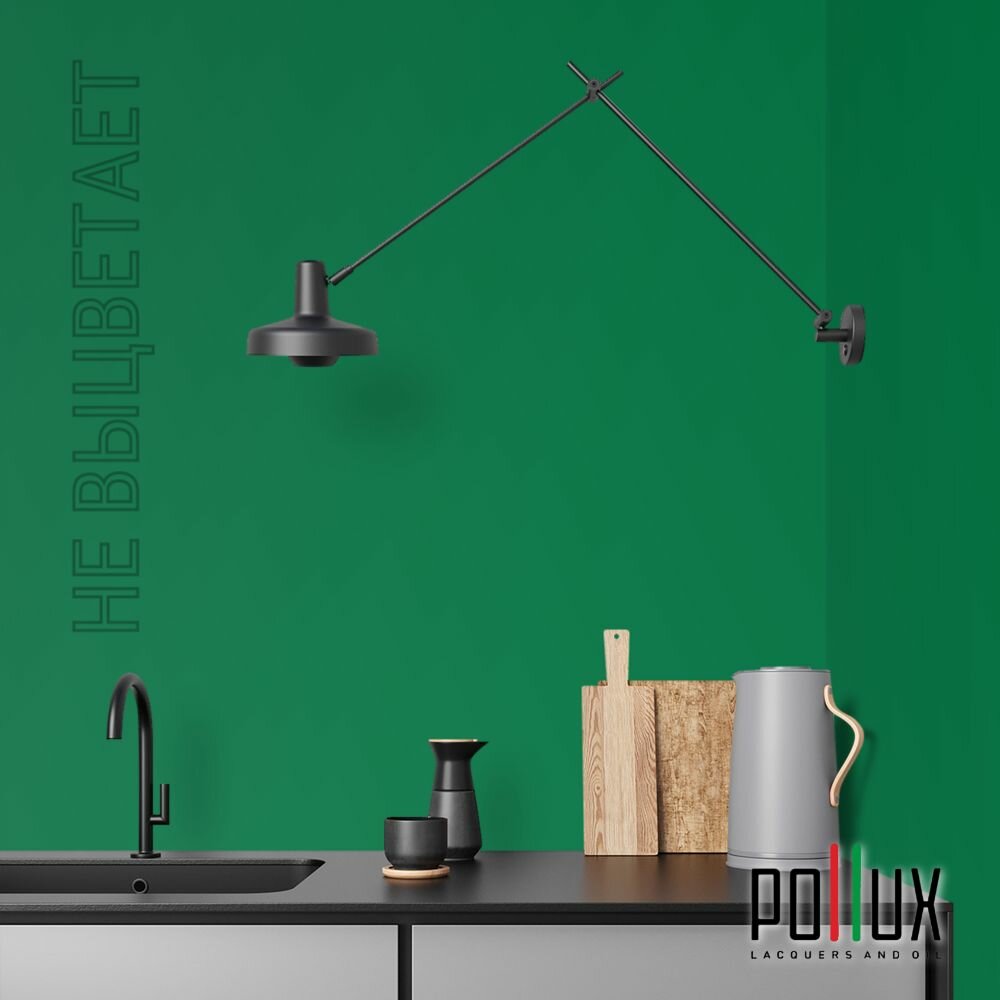 Краска моющаяся интерьерная для стен и потолков, Pollux INTERIOR без запаха, быстросохнущая, акриловая, матовое покрытие, цвет NCS S 6030-G, 1л.
