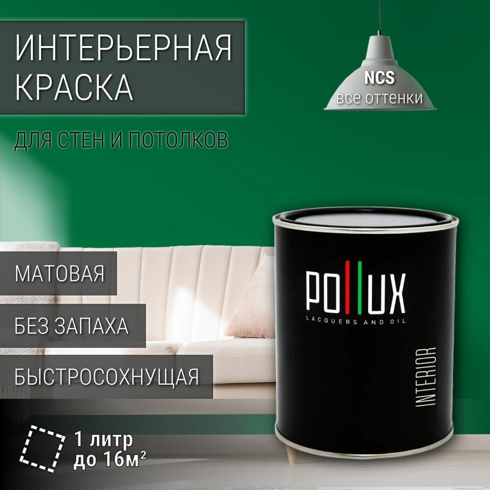 Краска моющаяся интерьерная для стен и потолков, Pollux INTERIOR без запаха, быстросохнущая, акриловая, матовое покрытие, цвет NCS S 2020-G, 1л.