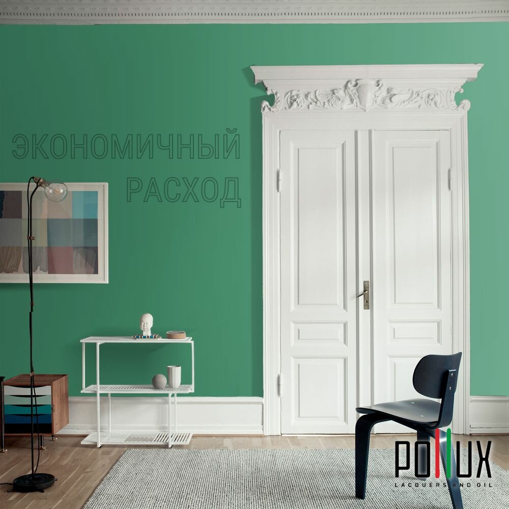 Краска моющаяся интерьерная для стен и потолков, Pollux INTERIOR без запаха, быстросохнущая, акриловая, матовое покрытие, цвет NCS S 5540-G, 1л.