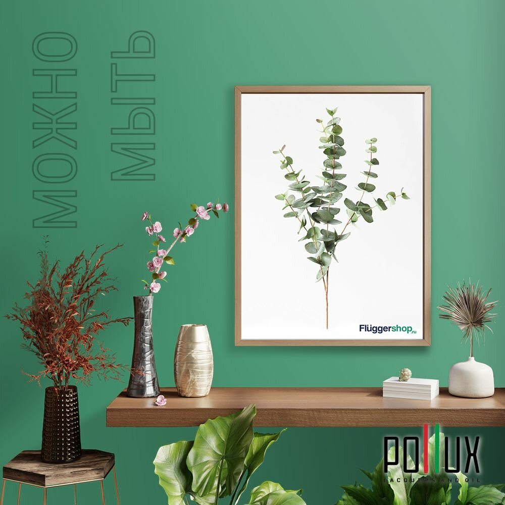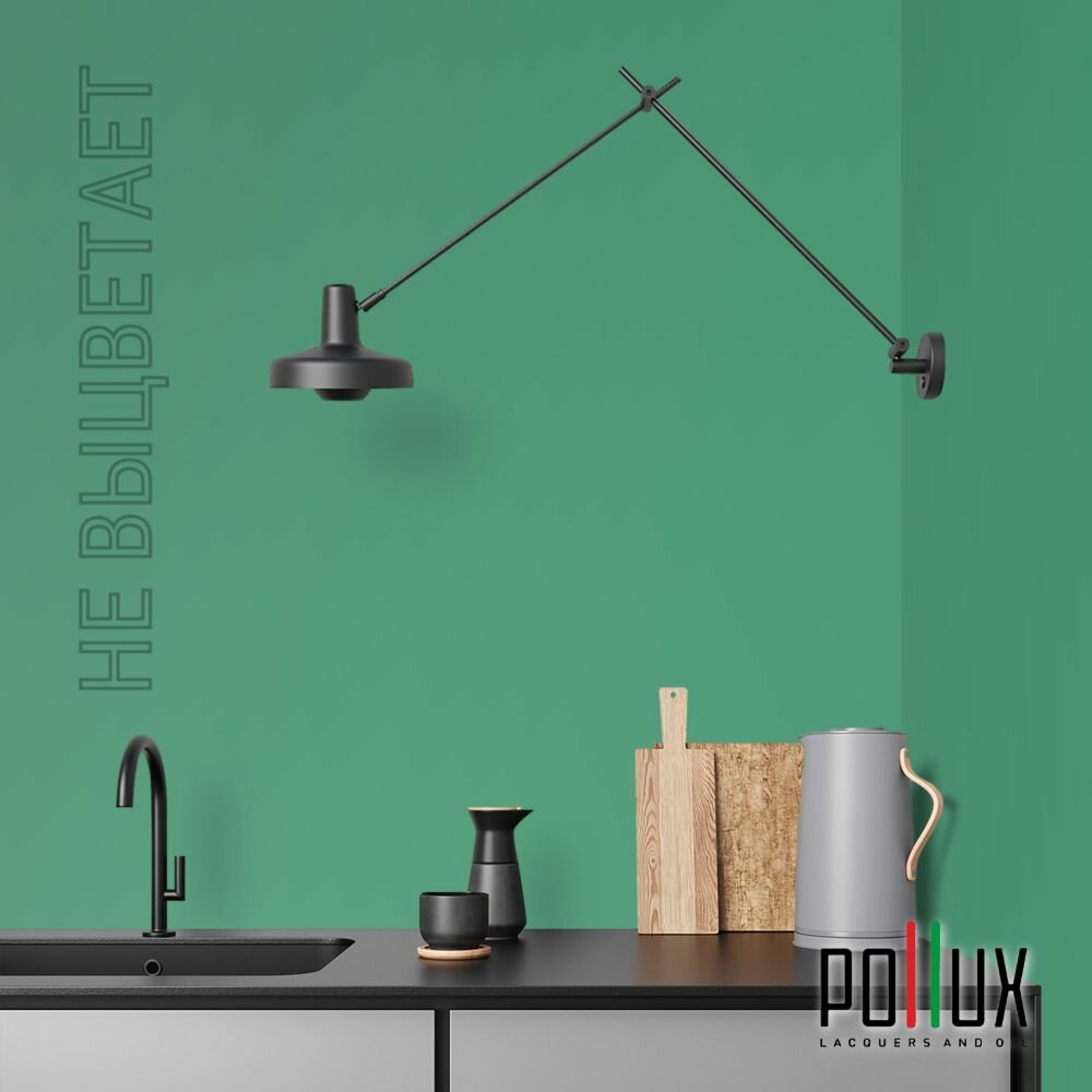 Краска моющаяся интерьерная для стен и потолков, Pollux INTERIOR без запаха, быстросохнущая, акриловая, матовое покрытие, цвет NCS S 6030-G, 1л.
