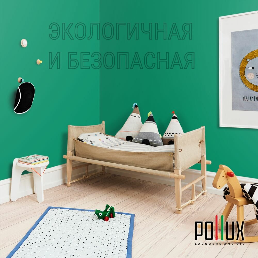 Краска моющаяся интерьерная для стен и потолков, Pollux INTERIOR без запаха, быстросохнущая, акриловая, матовое покрытие, цвет NCS S 6020-G, 1л.