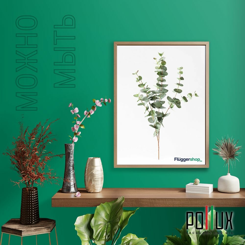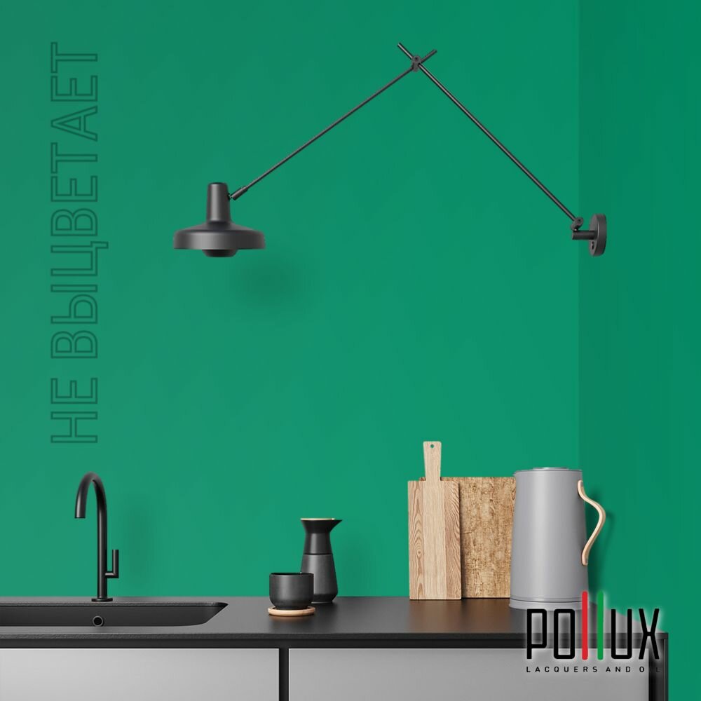 Краска моющаяся интерьерная для стен и потолков, Pollux INTERIOR без запаха, быстросохнущая, акриловая, матовое покрытие, цвет NCS S 6030-G, 1л.