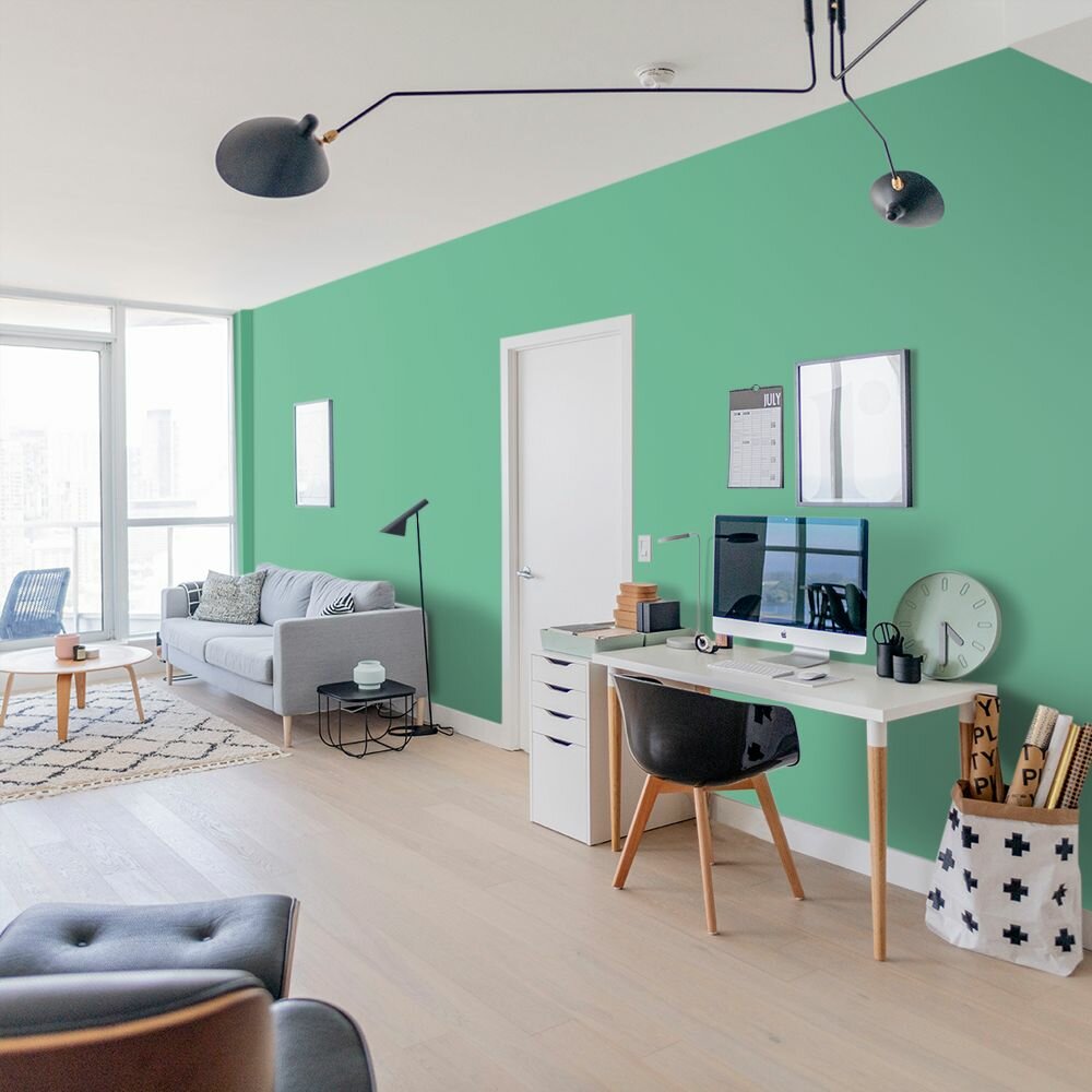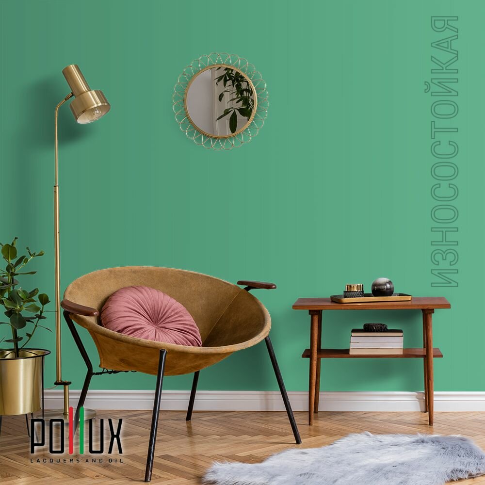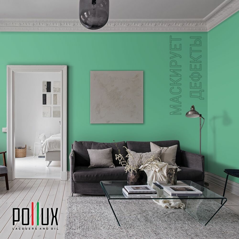 Краска моющаяся интерьерная для стен и потолков, Pollux INTERIOR без запаха, быстросохнущая, акриловая, матовое покрытие, цвет NCS S 6030-G, 1л.