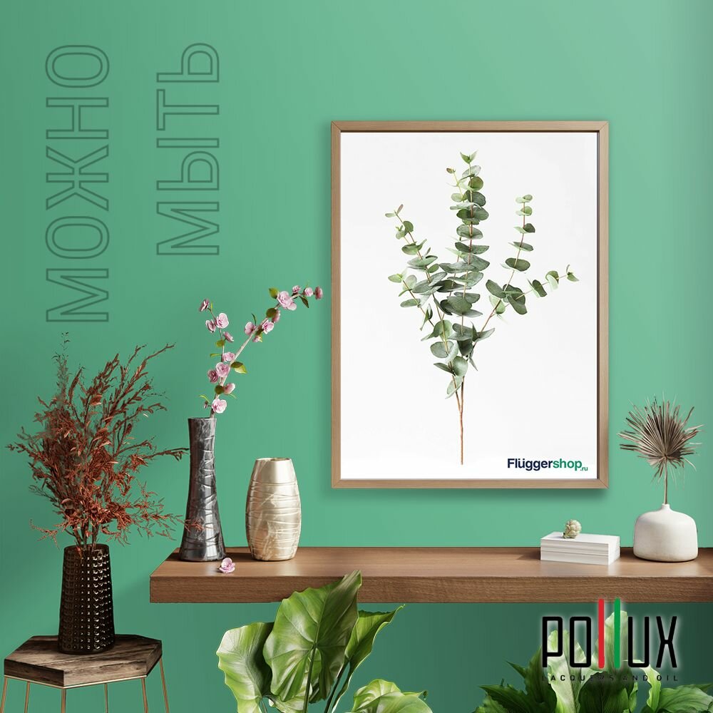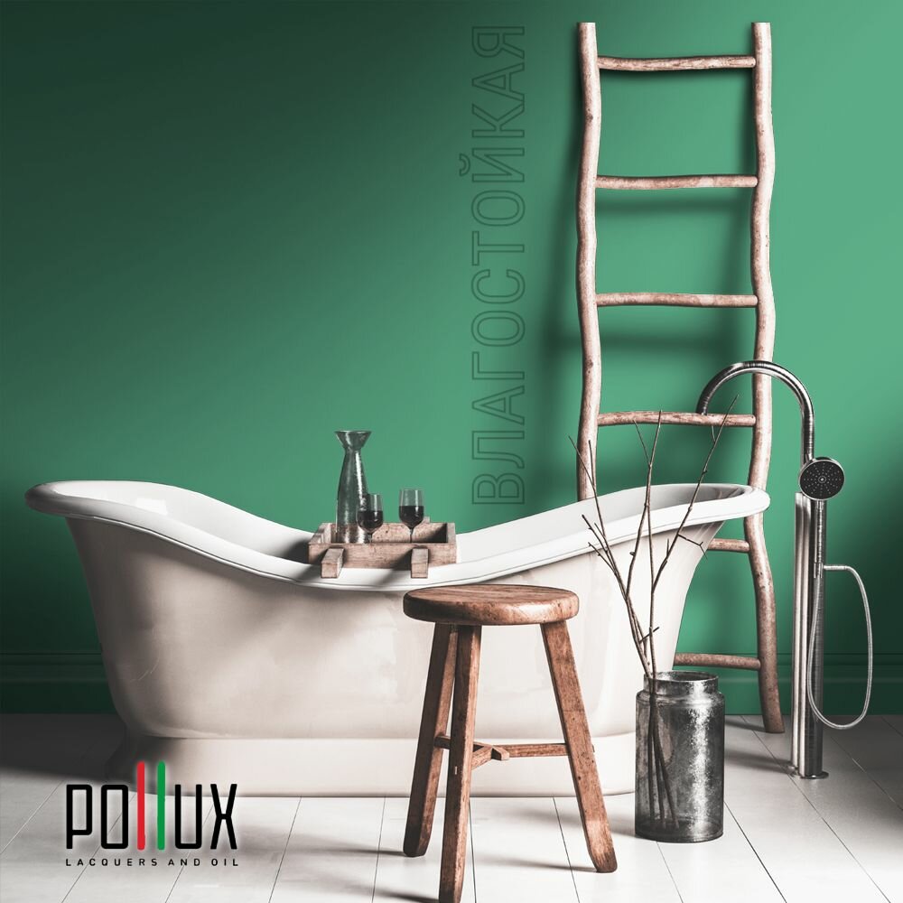 Краска моющаяся интерьерная для стен и потолков, Pollux INTERIOR без запаха, быстросохнущая, акриловая, матовое покрытие, цвет NCS S 5540-G, 1л.