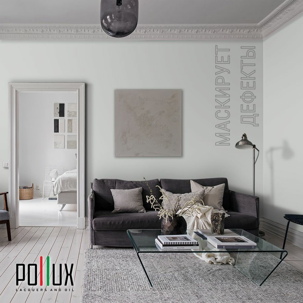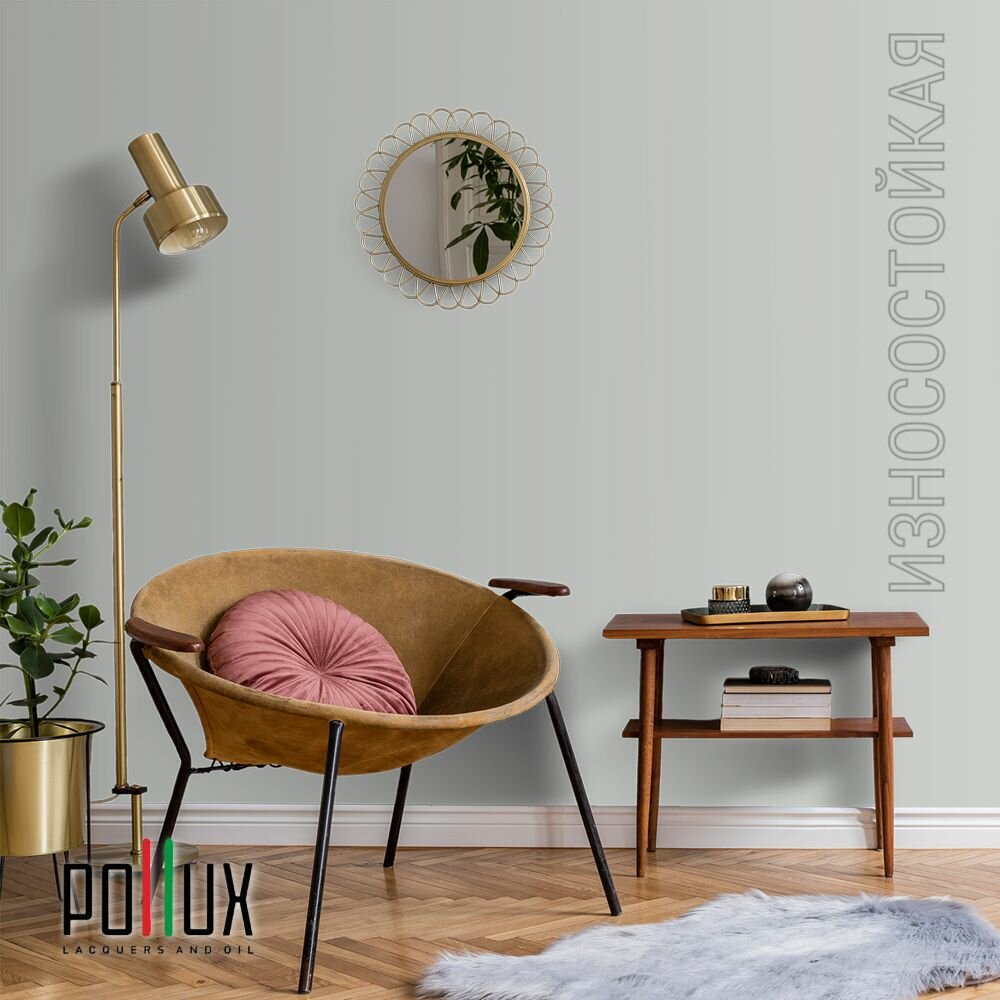 Краска моющаяся интерьерная для стен и потолков, Pollux INTERIOR без запаха, быстросохнущая, акриловая, матовое покрытие, цвет NCS S 7502-G, 1л.