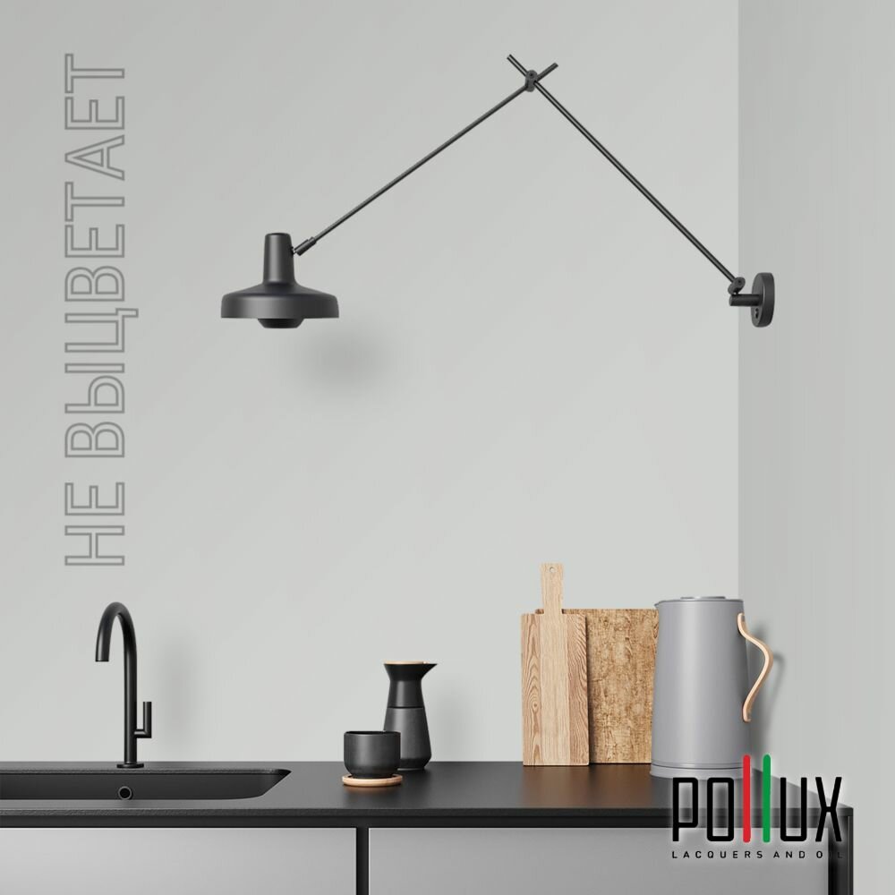 Краска моющаяся интерьерная для стен и потолков, Pollux INTERIOR без запаха, быстросохнущая, акриловая, матовое покрытие, цвет NCS S 7020-G, 1л.