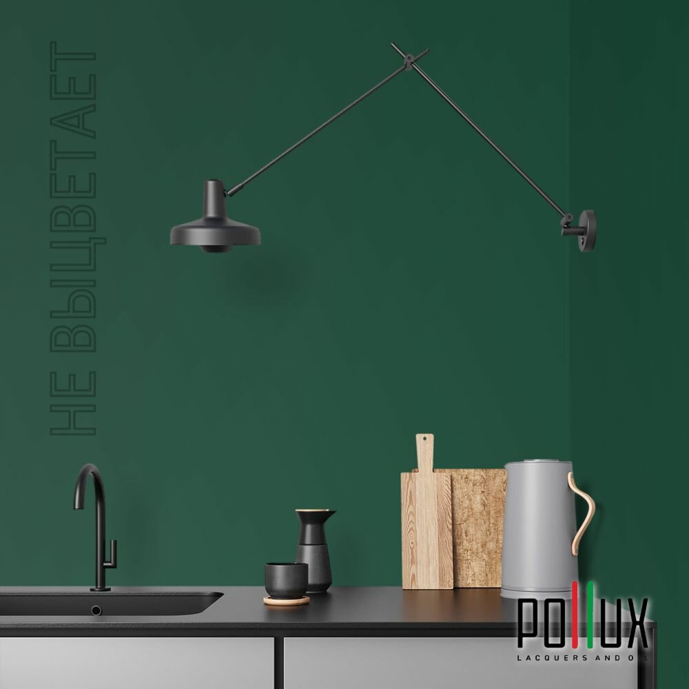 Краска моющаяся интерьерная для стен и потолков, Pollux INTERIOR без запаха, быстросохнущая, акриловая, матовое покрытие, цвет NCS S 6030-G, 1л.