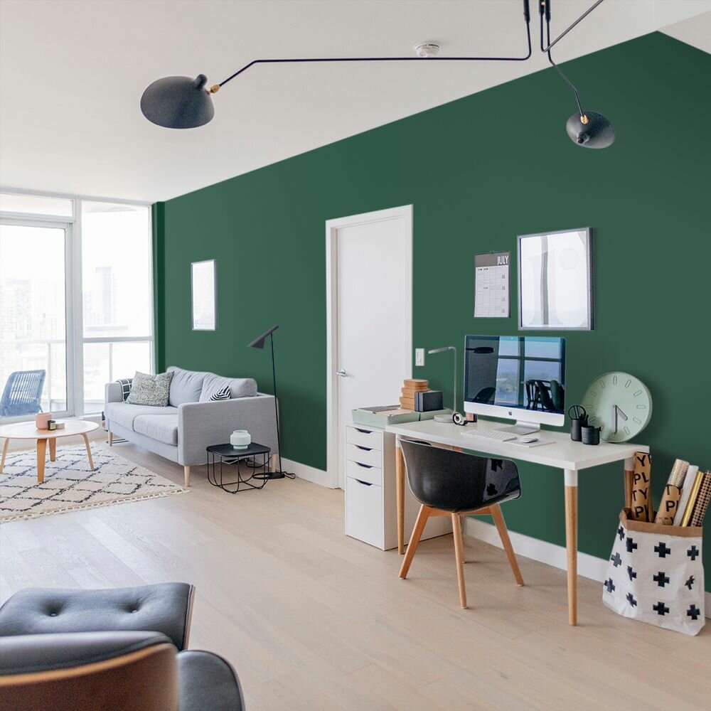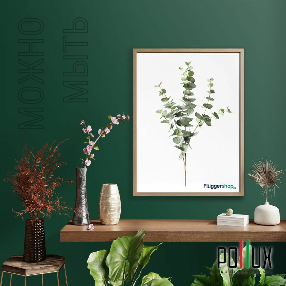 Краска моющаяся интерьерная для стен и потолков, Pollux INTERIOR без запаха, быстросохнущая, акриловая, матовое покрытие, цвет NCS S 4050-G, 1л.