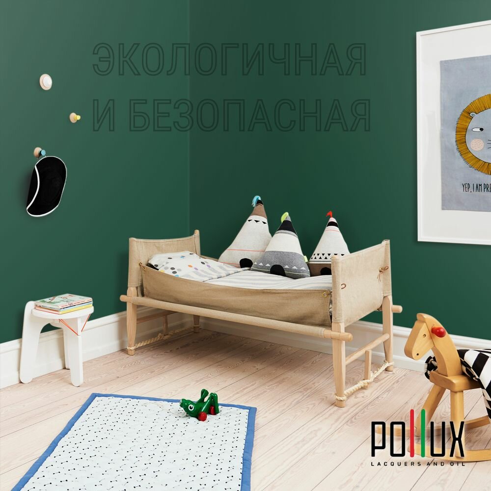 Краска моющаяся интерьерная для стен и потолков, Pollux INTERIOR без запаха, быстросохнущая, акриловая, матовое покрытие, цвет NCS S 6020-G, 1л.