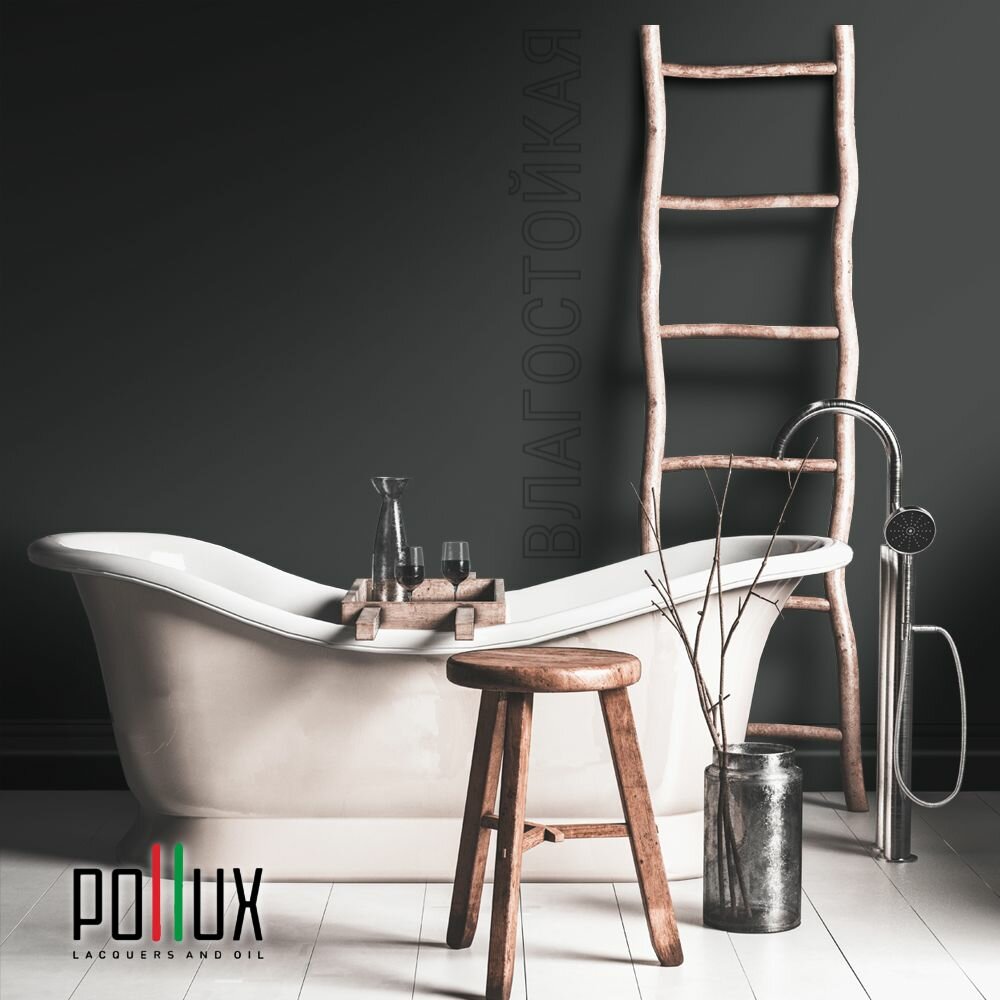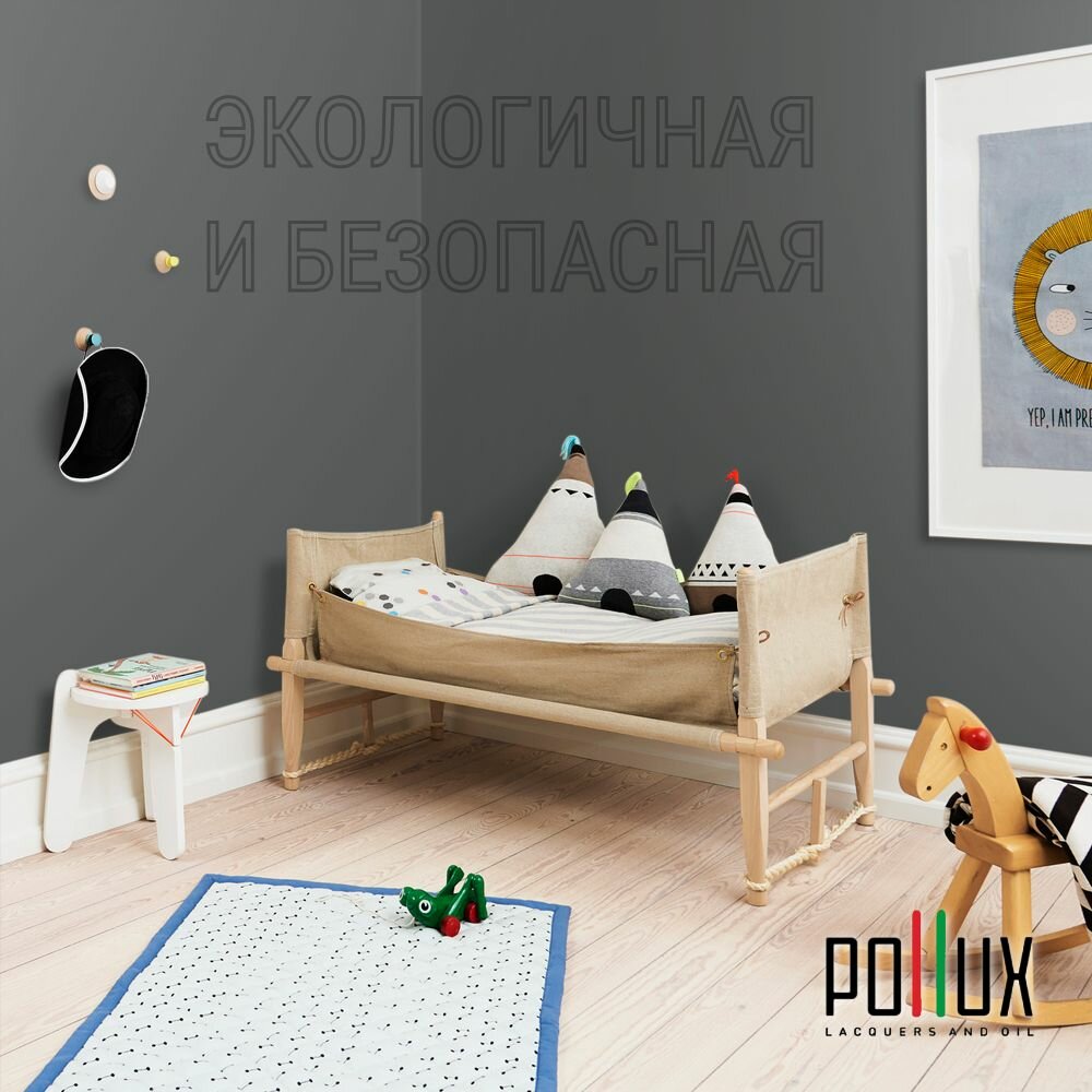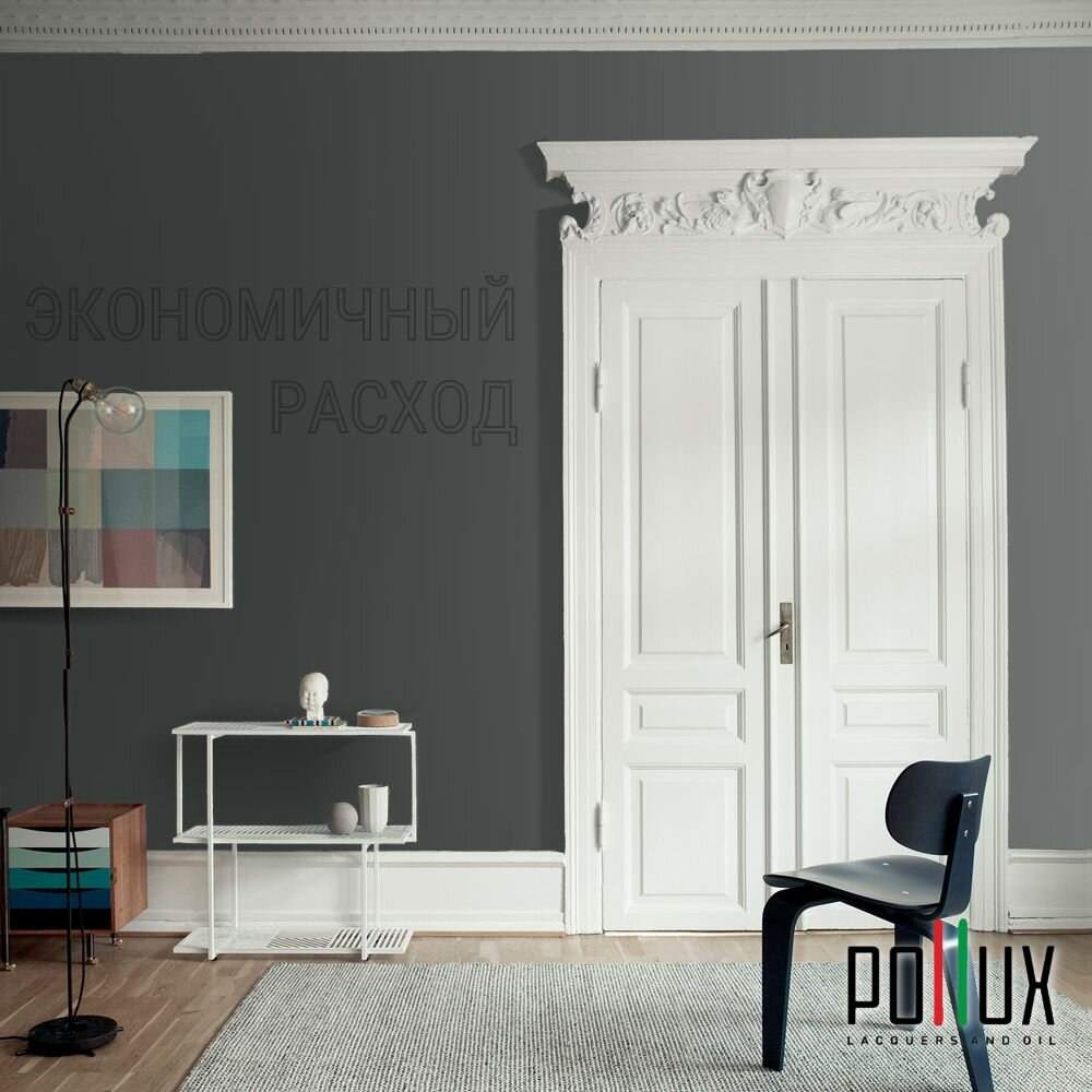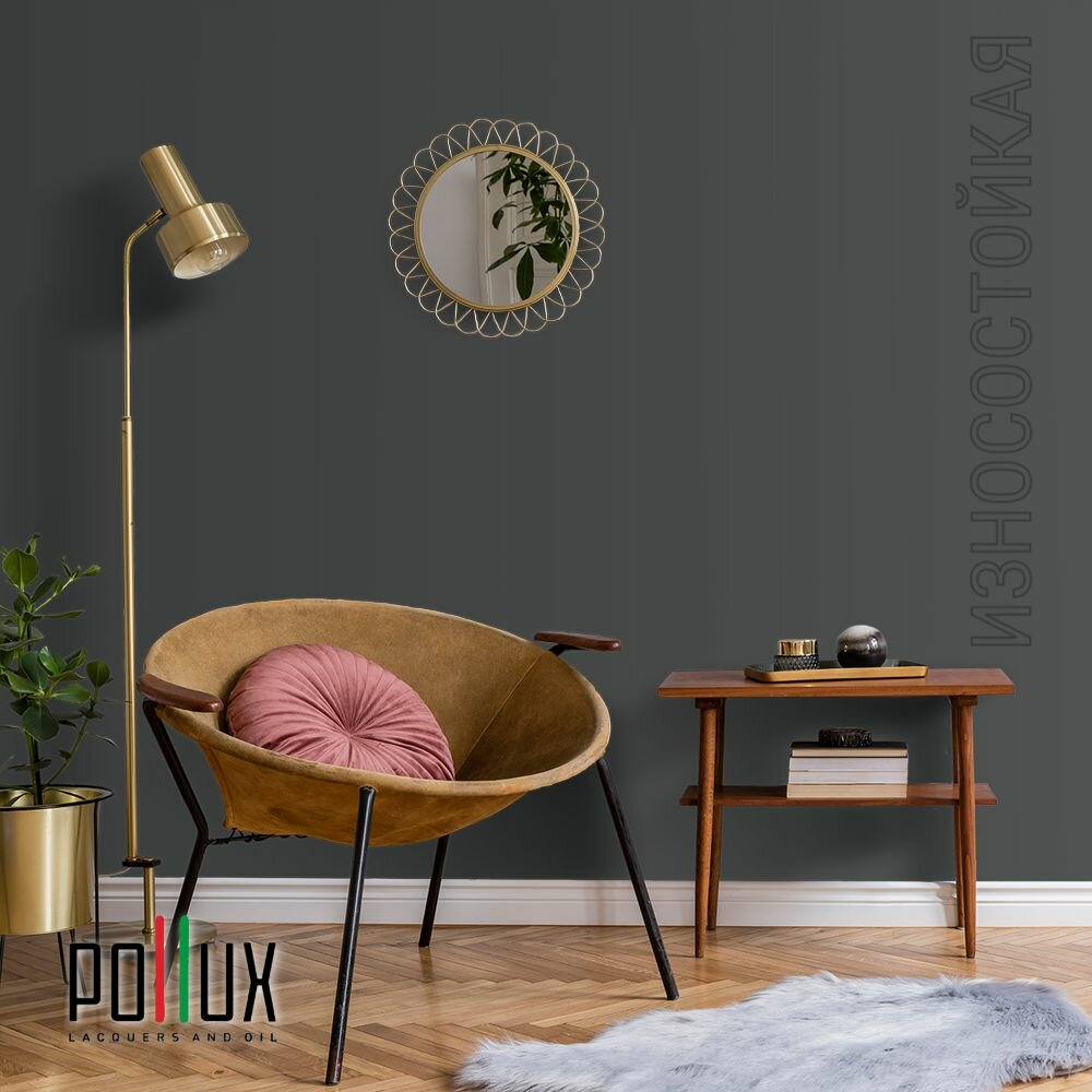 Краска моющаяся интерьерная для стен и потолков, Pollux INTERIOR без запаха, быстросохнущая, акриловая, матовое покрытие, цвет NCS S 7020-G, 1л.