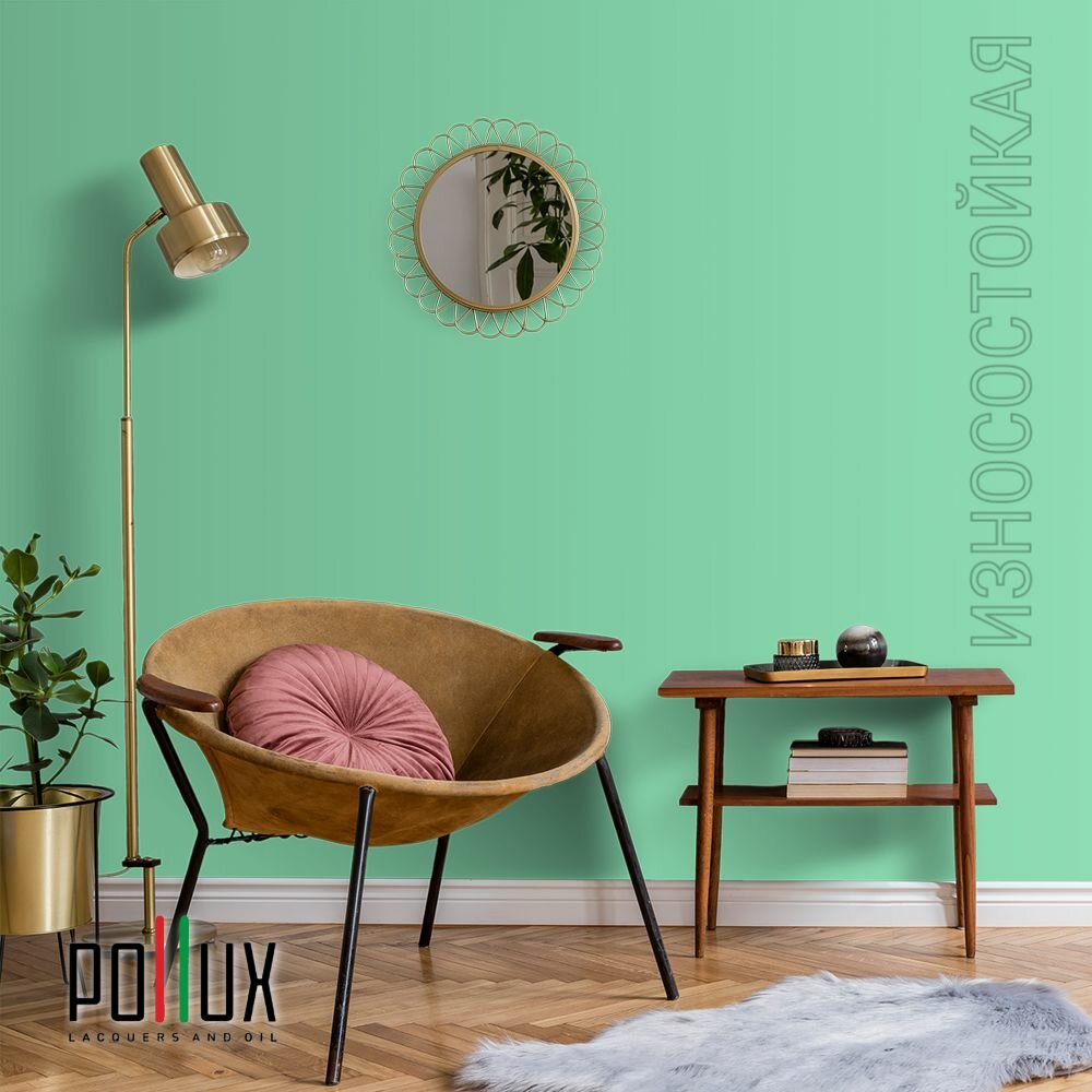 Краска моющаяся интерьерная для стен и потолков, Pollux INTERIOR без запаха, быстросохнущая, акриловая, матовое покрытие, цвет NCS S 6030-G, 1л.