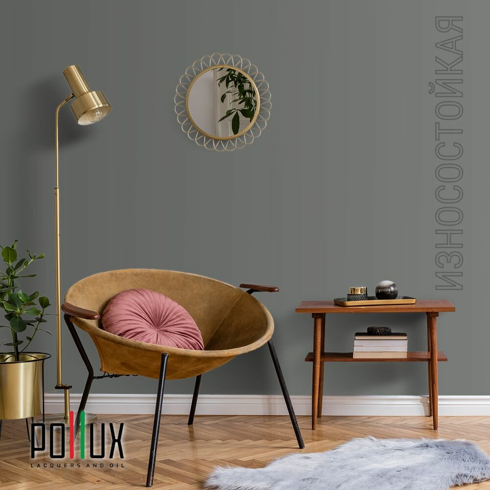 Краска моющаяся интерьерная для стен и потолков, Pollux INTERIOR без запаха, быстросохнущая, акриловая, матовое покрытие, цвет NCS S 7020-G, 1л.