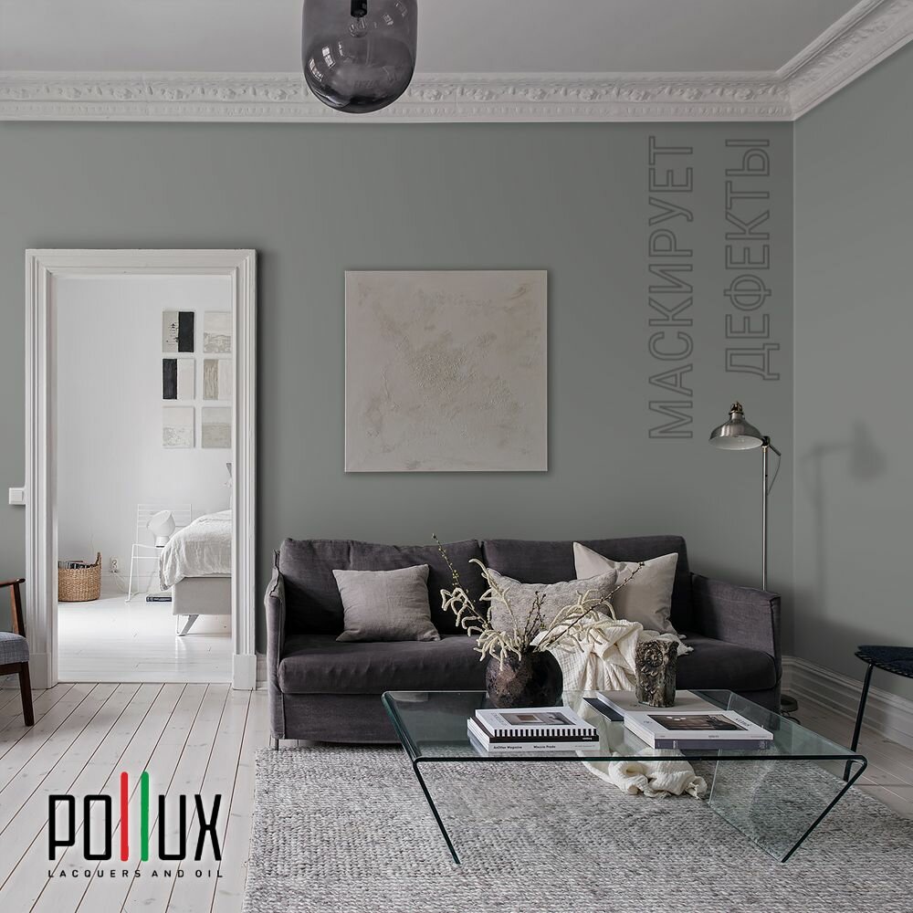 Краска моющаяся интерьерная для стен и потолков, Pollux INTERIOR без запаха, быстросохнущая, акриловая, матовое покрытие, цвет NCS S 8502-G, 1л.
