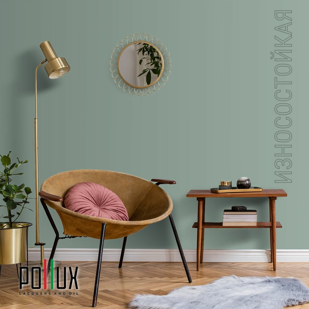 Краска моющаяся интерьерная для стен и потолков, Pollux INTERIOR без запаха, быстросохнущая, акриловая, матовое покрытие, цвет NCS S 4050-G, 1л.