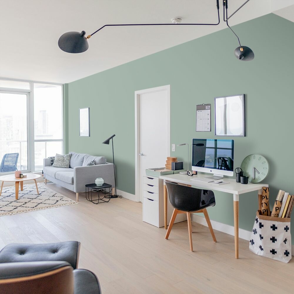 Краска моющаяся интерьерная для стен и потолков, Pollux INTERIOR без запаха, быстросохнущая, акриловая, матовое покрытие, цвет NCS S 6020-G, 1л.