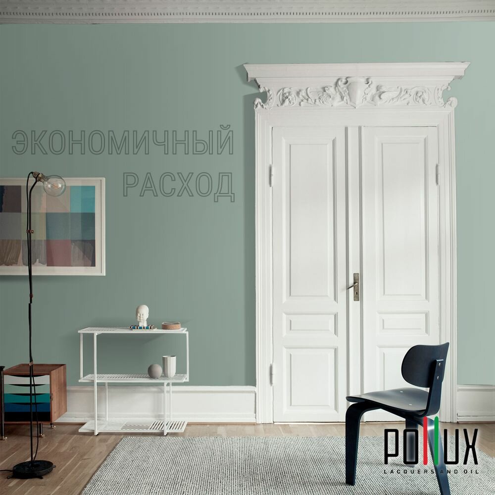 Краска моющаяся интерьерная для стен и потолков, Pollux INTERIOR без запаха, быстросохнущая, акриловая, матовое покрытие, цвет NCS S 4030-G, 1л.