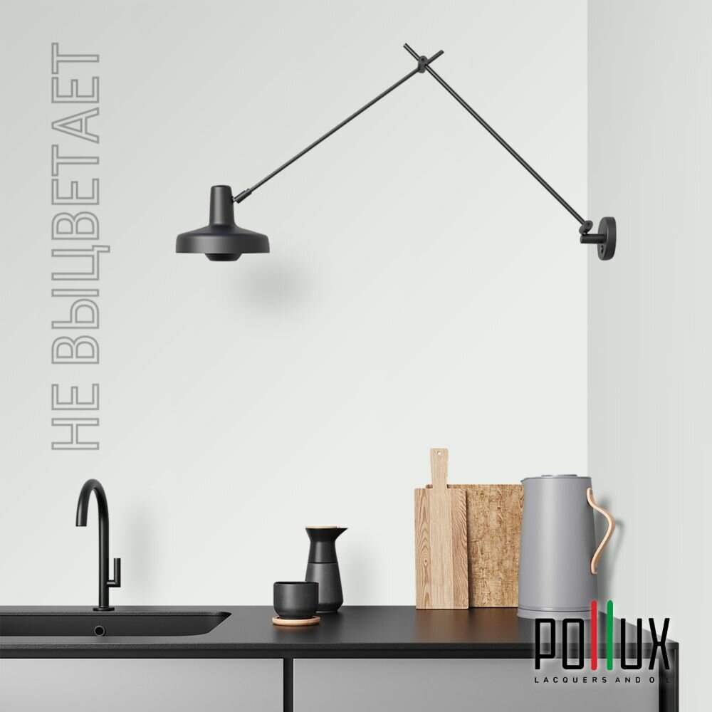 Краска моющаяся интерьерная для стен и потолков, Pollux INTERIOR без запаха, быстросохнущая, акриловая, матовое покрытие, цвет NCS S 7020-G, 1л.