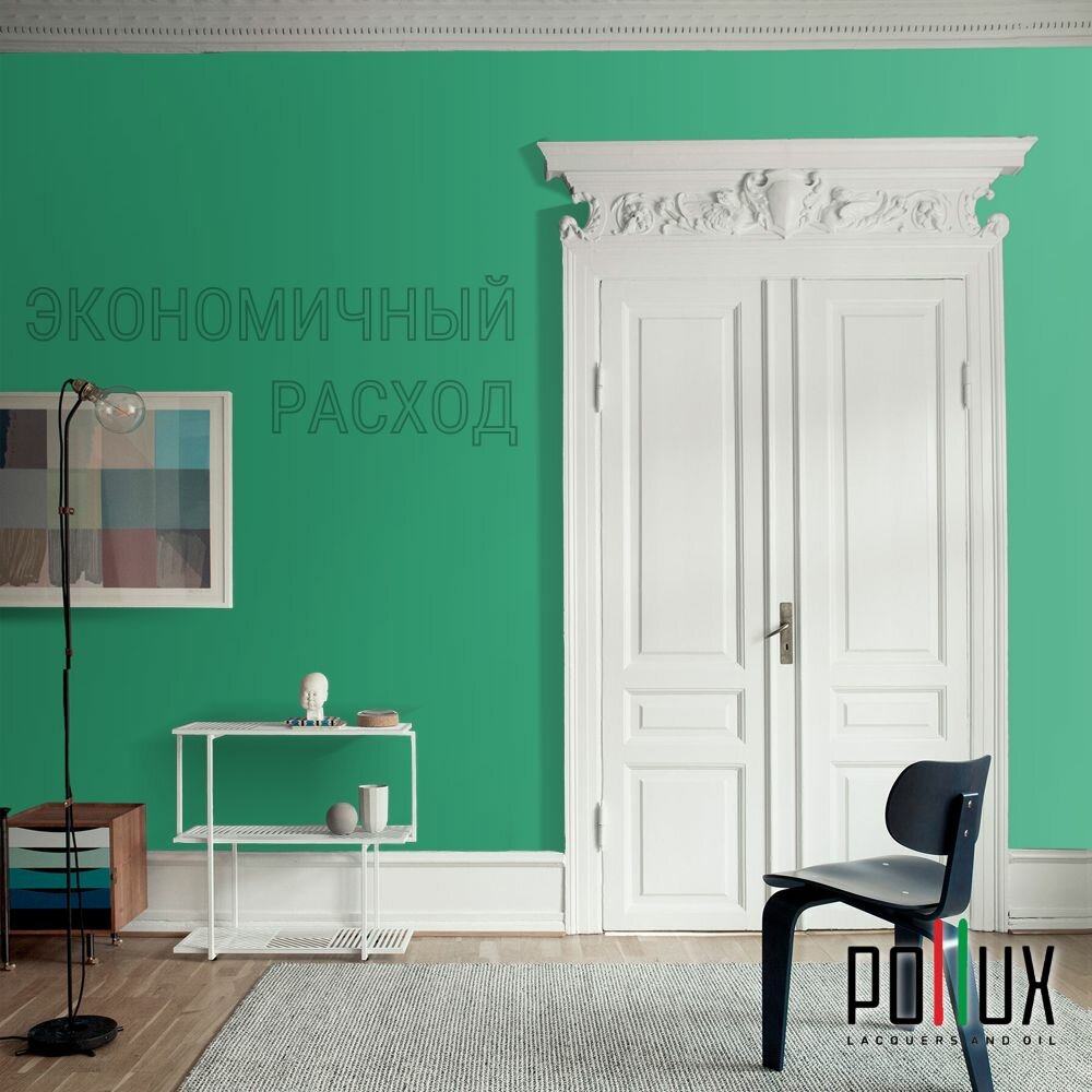 Краска моющаяся интерьерная для стен и потолков, Pollux INTERIOR без запаха, быстросохнущая, акриловая, матовое покрытие, цвет NCS S 4040-R, 1л.