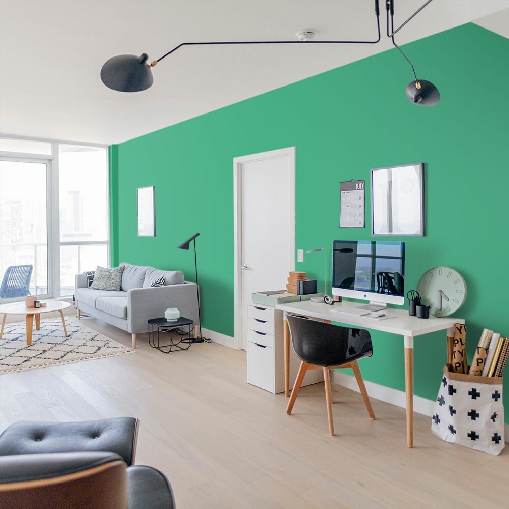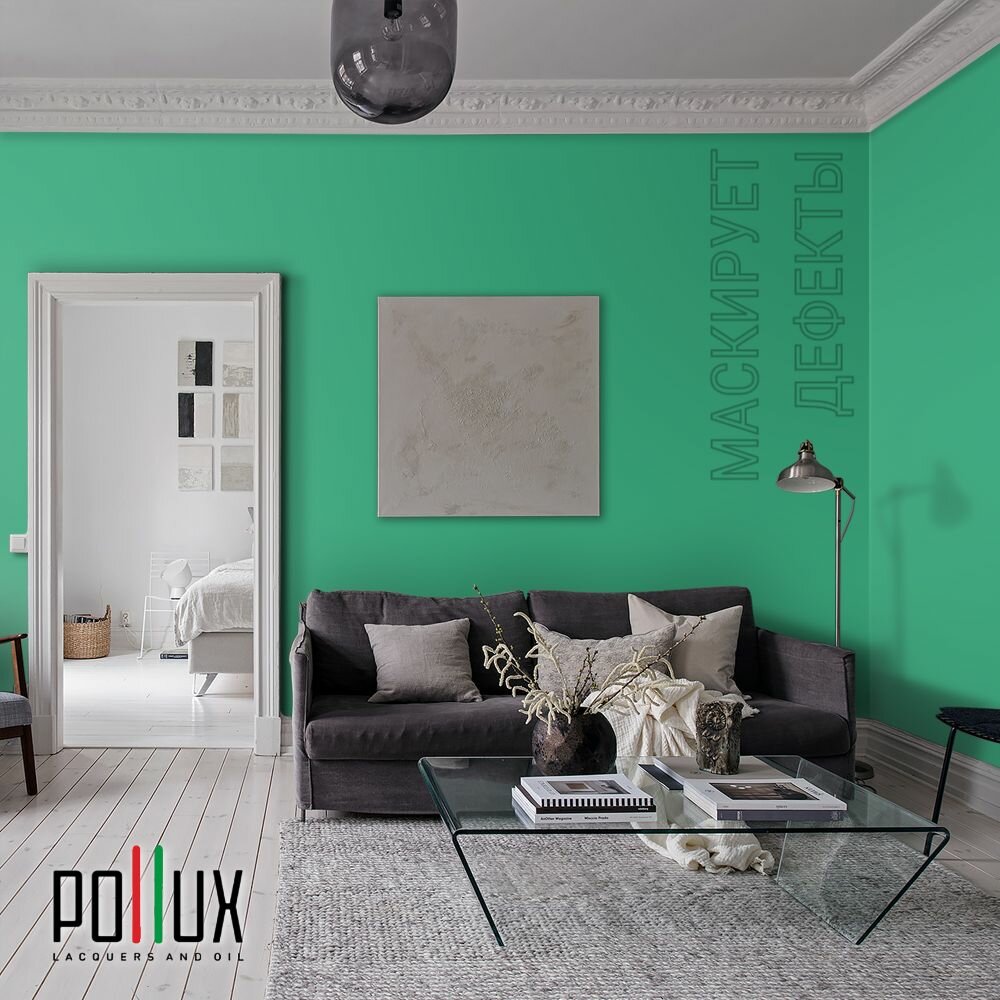 Краска моющаяся интерьерная для стен и потолков, Pollux INTERIOR без запаха, быстросохнущая, акриловая, матовое покрытие, цвет NCS S 6030-G, 1л.